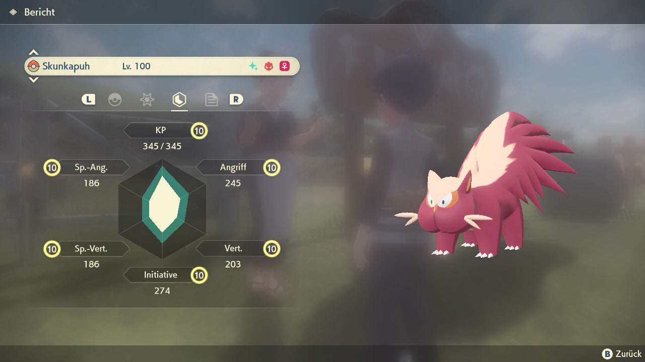 Das Pokemon ist mit beeindruckenden 6×31 IV-Werten ausgestattet. Das bedeutet, dass es auf allen sechs Werten (KP, Ang., Sp-Ang., Vert., Sp-Vert., Init.) die maximalen 31 IV/DV-Punkte besitzt. Dein Pokemon startet somit mit herausragender Stärke in digitale Kämpfe.