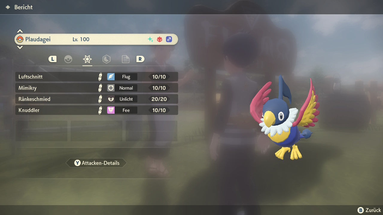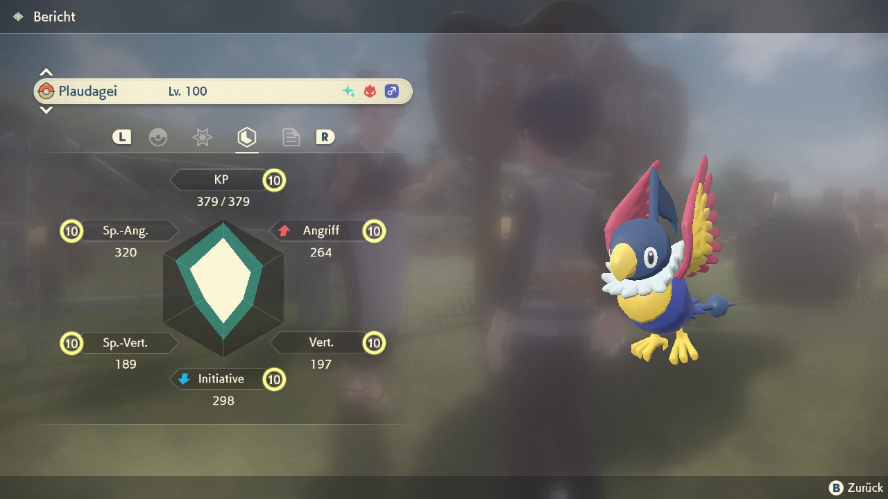 Das Pokemon ist mit beeindruckenden 6×31 IV-Werten ausgestattet. Das bedeutet, dass es auf allen sechs Werten (KP, Ang., Sp-Ang., Vert., Sp-Vert., Init.) die maximalen 31 IV/DV-Punkte besitzt. Dein Pokemon startet somit mit herausragender Stärke in digitale Kämpfe.