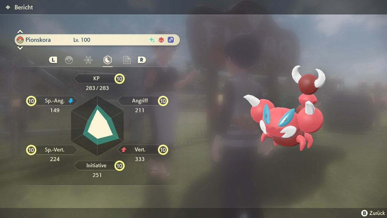 Das Pokemon ist mit beeindruckenden 6×31 IV-Werten ausgestattet. Das bedeutet, dass es auf allen sechs Werten (KP, Ang., Sp-Ang., Vert., Sp-Vert., Init.) die maximalen 31 IV/DV-Punkte besitzt. Dein Pokemon startet somit mit herausragender Stärke in digitale Kämpfe.