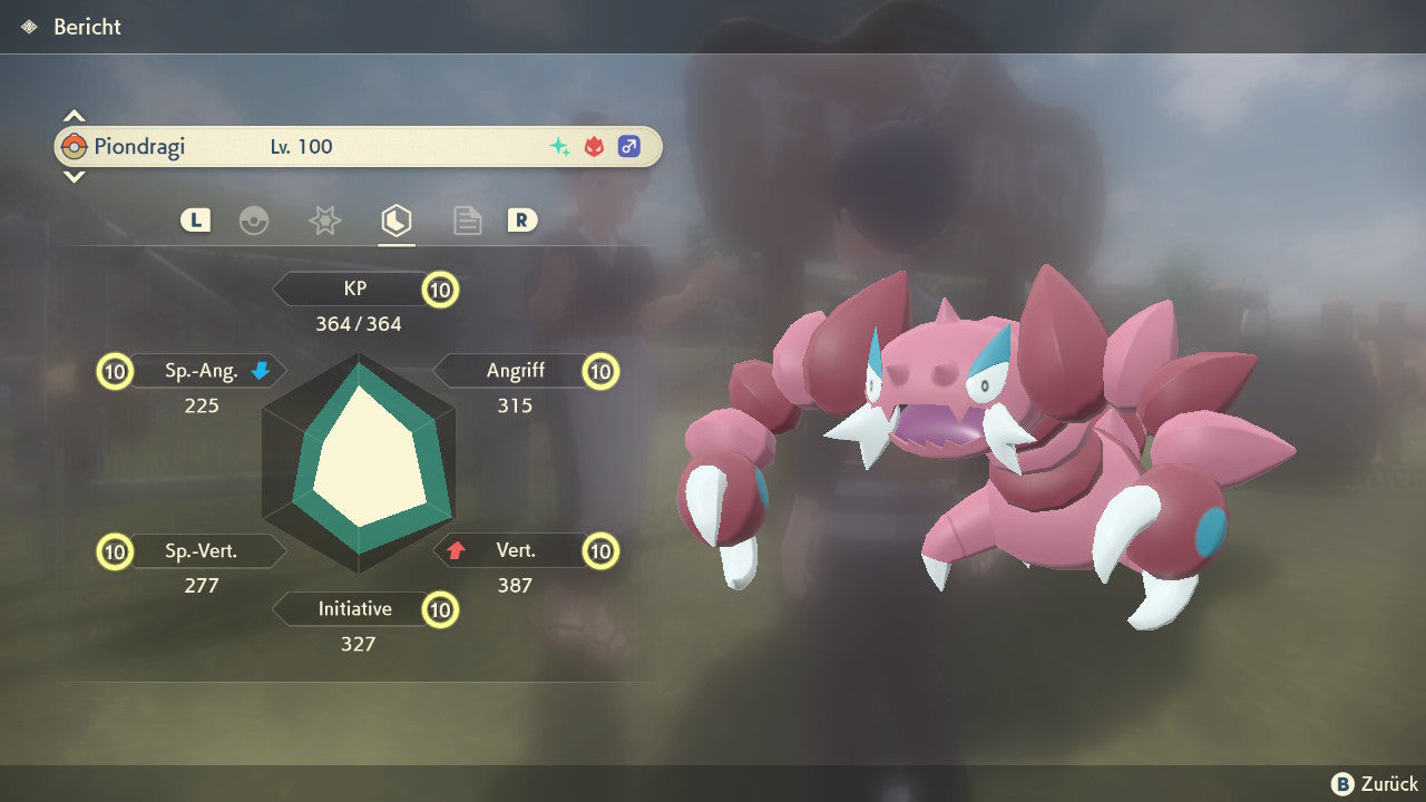 Das Pokemon ist mit beeindruckenden 6×31 IV-Werten ausgestattet. Das bedeutet, dass es auf allen sechs Werten (KP, Ang., Sp-Ang., Vert., Sp-Vert., Init.) die maximalen 31 IV/DV-Punkte besitzt. Dein Pokemon startet somit mit herausragender Stärke in digitale Kämpfe.