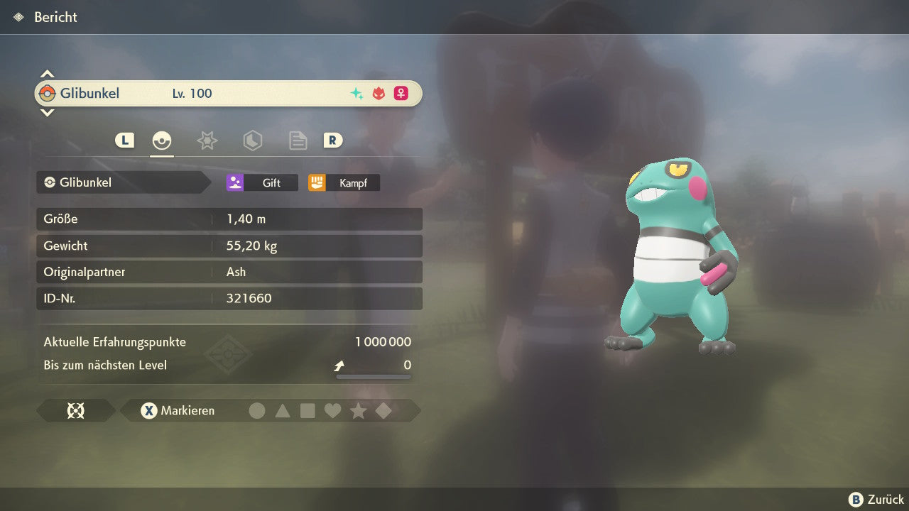 Das Pokemon ist mit beeindruckenden 6×31 IV-Werten ausgestattet. Das bedeutet, dass es auf allen sechs Werten (KP, Ang., Sp-Ang., Vert., Sp-Vert., Init.) die maximalen 31 IV/DV-Punkte besitzt. Dein Pokemon startet somit mit herausragender Stärke in digitale Kämpfe.