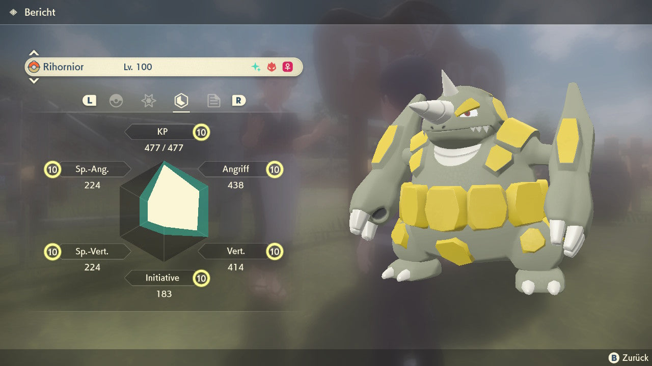 Das Pokemon ist mit beeindruckenden 6×31 IV-Werten ausgestattet. Das bedeutet, dass es auf allen sechs Werten (KP, Ang., Sp-Ang., Vert., Sp-Vert., Init.) die maximalen 31 IV/DV-Punkte besitzt. Dein Pokemon startet somit mit herausragender Stärke in digitale Kämpfe.
