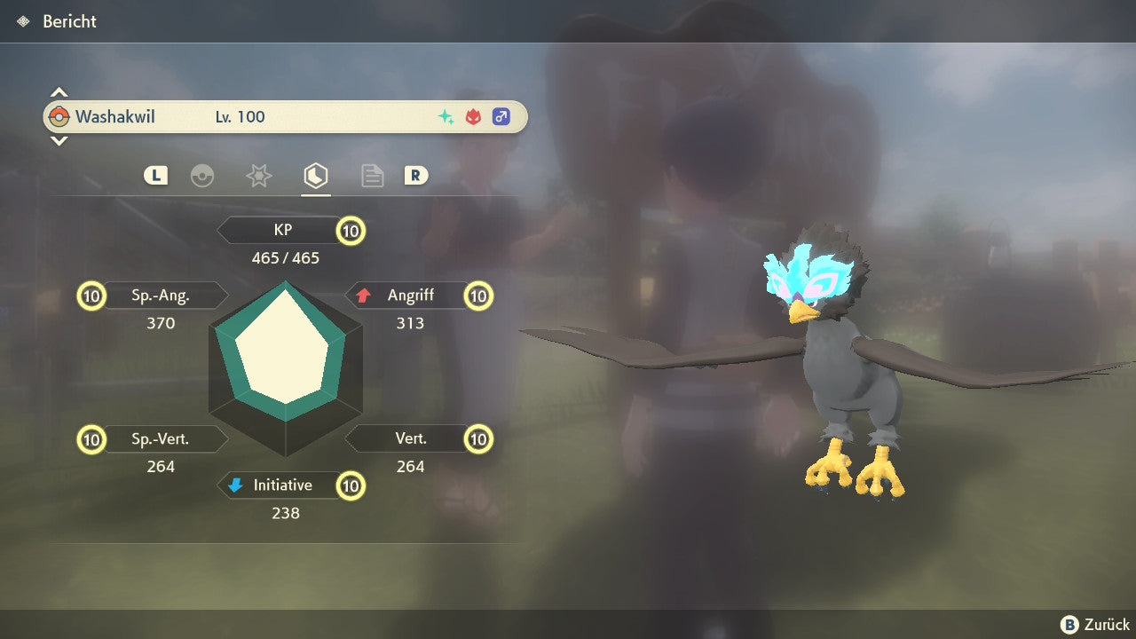 Das Pokemon ist mit beeindruckenden 6×31 IV-Werten ausgestattet. Das bedeutet, dass es auf allen sechs Werten (KP, Ang., Sp-Ang., Vert., Sp-Vert., Init.) die maximalen 31 IV/DV-Punkte besitzt. Dein Pokemon startet somit mit herausragender Stärke in digitale Kämpfe.