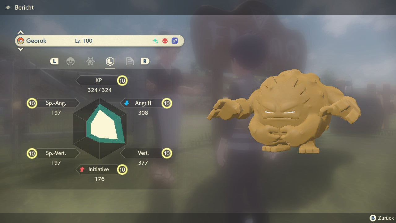 Das Pokemon ist mit beeindruckenden 6×31 IV-Werten ausgestattet. Das bedeutet, dass es auf allen sechs Werten (KP, Ang., Sp-Ang., Vert., Sp-Vert., Init.) die maximalen 31 IV/DV-Punkte besitzt. Dein Pokemon startet somit mit herausragender Stärke in digitale Kämpfe.