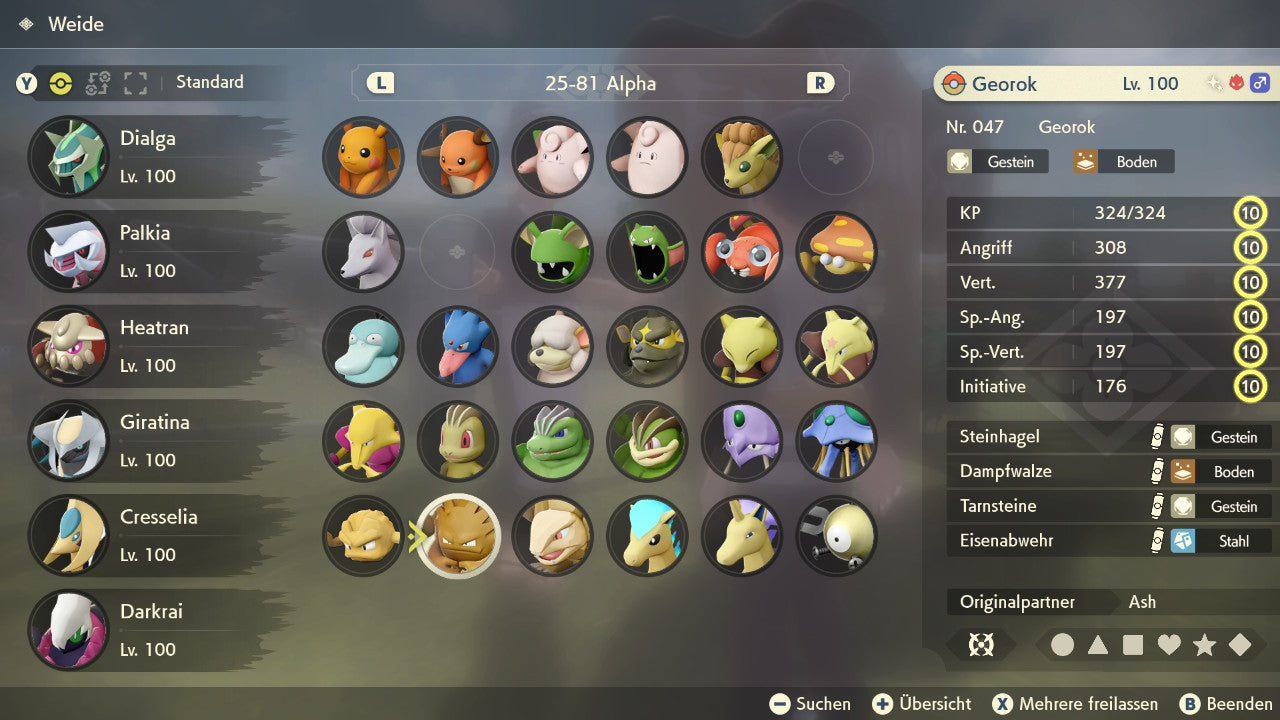 Die Pokemon sind für die Spielversion Pokemon Legenden Arceus.
