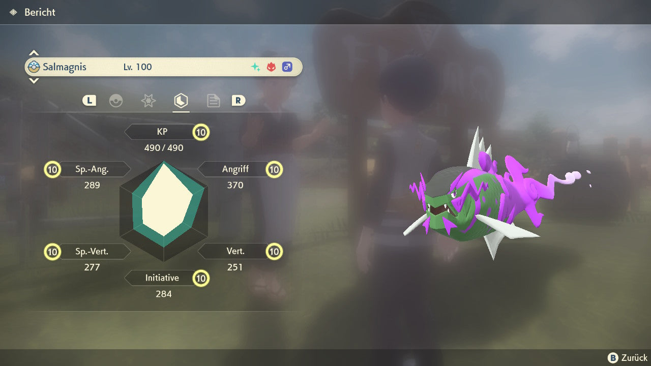 Das Pokemon ist mit beeindruckenden 6×31 IV-Werten ausgestattet. Das bedeutet, dass es auf allen sechs Werten (KP, Ang., Sp-Ang., Vert., Sp-Vert., Init.) die maximalen 31 IV/DV-Punkte besitzt. Dein Pokemon startet somit mit herausragender Stärke in digitale Kämpfe.