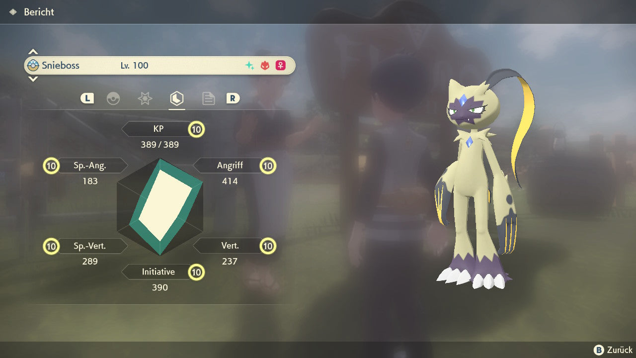 Das Pokemon ist mit beeindruckenden 6×31 IV-Werten ausgestattet. Das bedeutet, dass es auf allen sechs Werten (KP, Ang., Sp-Ang., Vert., Sp-Vert., Init.) die maximalen 31 IV/DV-Punkte besitzt. Dein Pokemon startet somit mit herausragender Stärke in digitale Kämpfe.