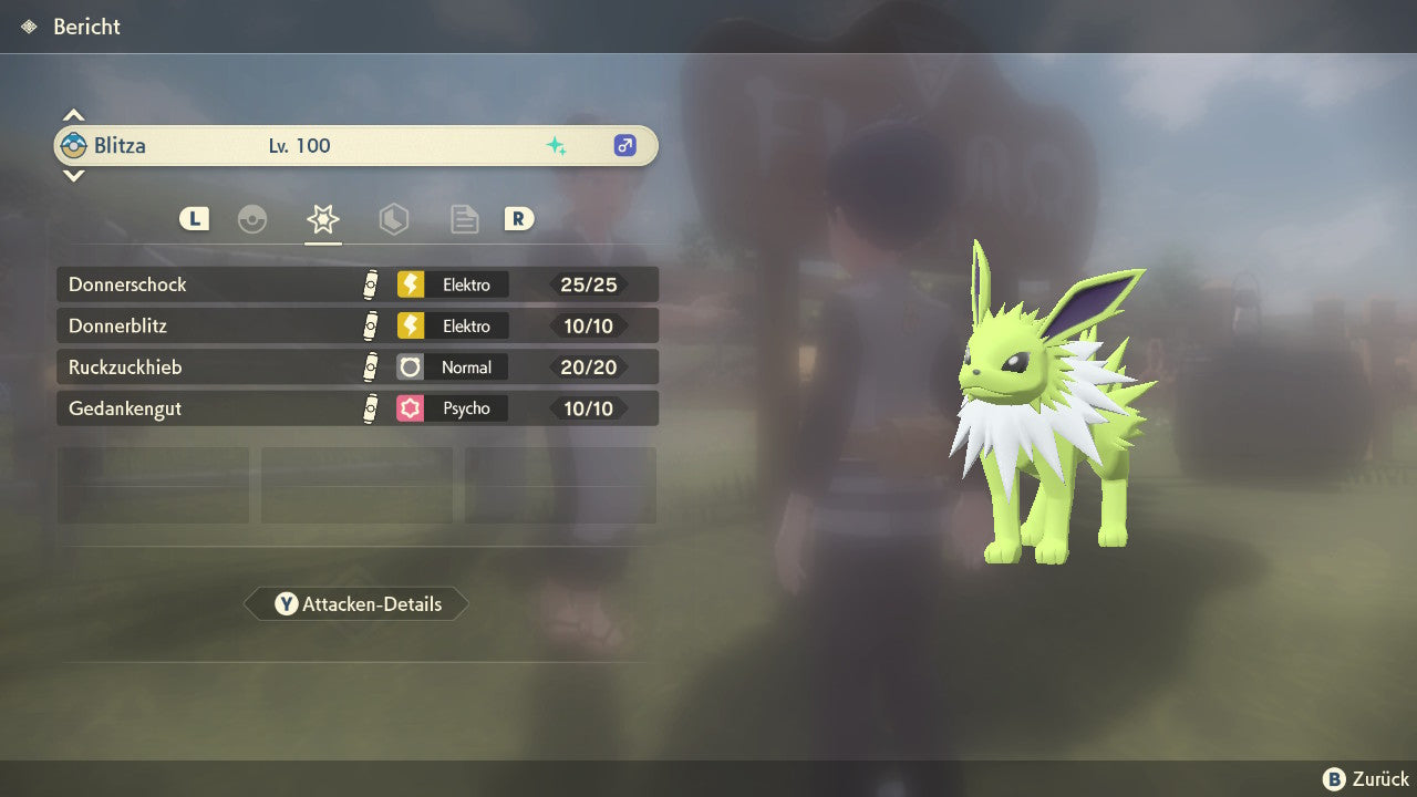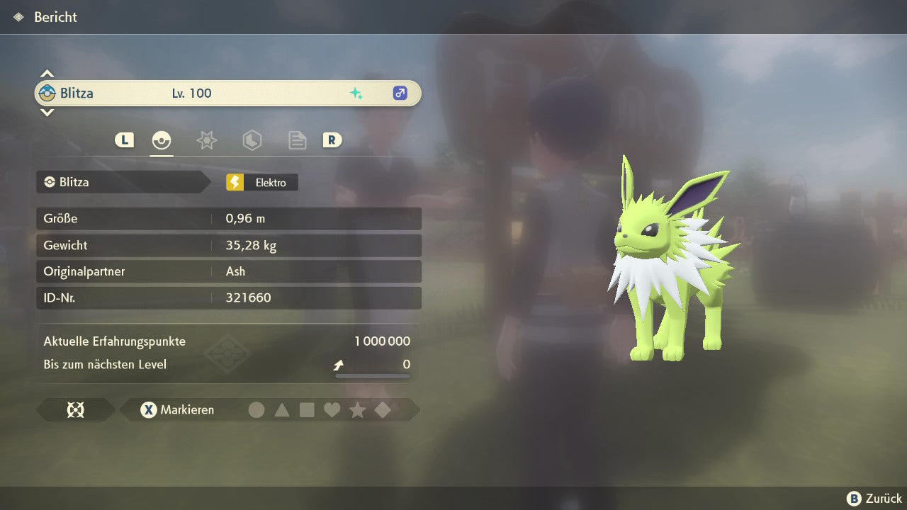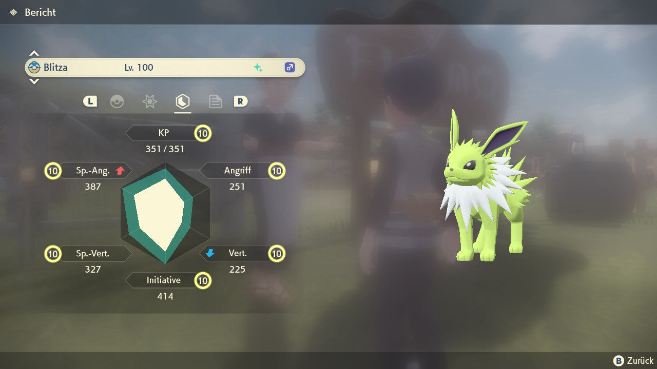 Das Pokemon ist mit beeindruckenden 6×31 IV-Werten ausgestattet. Das bedeutet, dass es auf allen sechs Werten (KP, Ang., Sp-Ang., Vert., Sp-Vert., Init.) die maximalen 31 IV/DV-Punkte besitzt. Dein Pokemon startet somit mit herausragender Stärke in digitale Kämpfe.
