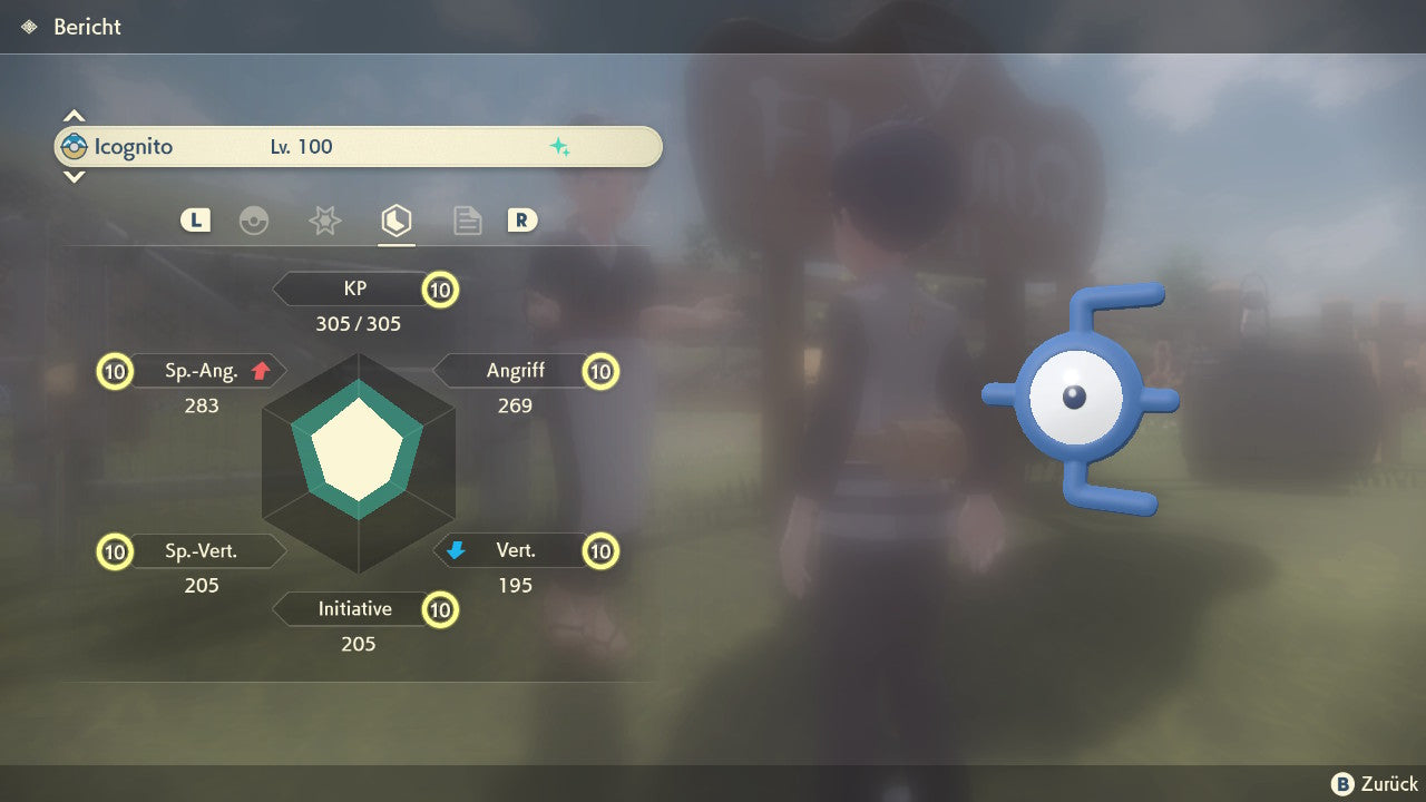 Das Pokemon ist mit beeindruckenden 6×31 IV-Werten ausgestattet. Das bedeutet, dass es auf allen sechs Werten (KP, Ang., Sp-Ang., Vert., Sp-Vert., Init.) die maximalen 31 IV/DV-Punkte besitzt. Dein Pokemon startet somit mit herausragender Stärke in digitale Kämpfe.