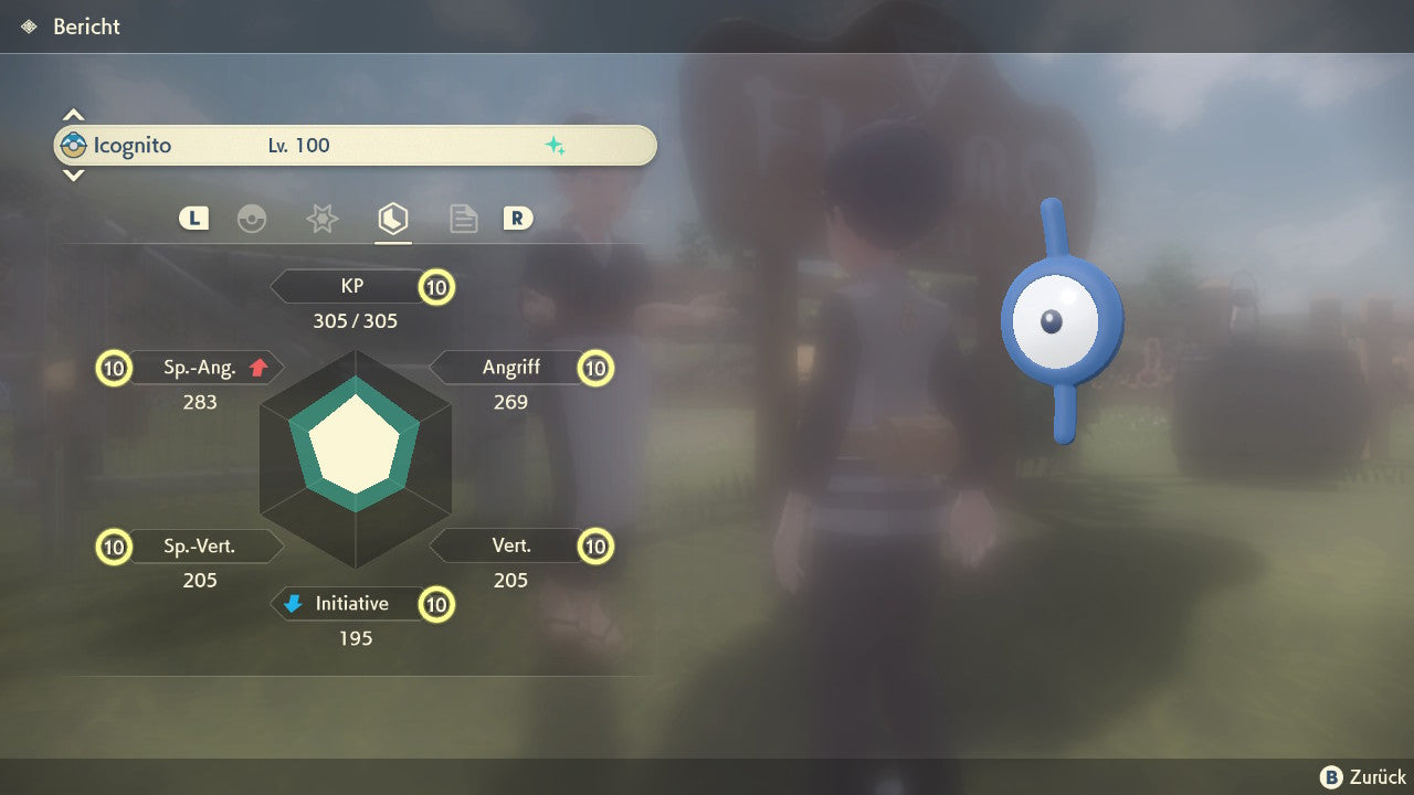 Das Pokemon ist mit beeindruckenden 6×31 IV-Werten ausgestattet. Das bedeutet, dass es auf allen sechs Werten (KP, Ang., Sp-Ang., Vert., Sp-Vert., Init.) die maximalen 31 IV/DV-Punkte besitzt. Dein Pokemon startet somit mit herausragender Stärke in digitale Kämpfe.