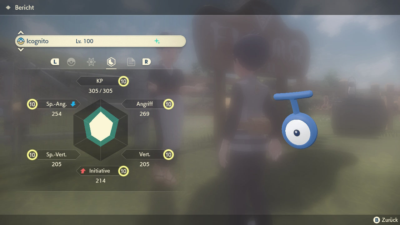 Das Pokemon ist mit beeindruckenden 6×31 IV-Werten ausgestattet. Das bedeutet, dass es auf allen sechs Werten (KP, Ang., Sp-Ang., Vert., Sp-Vert., Init.) die maximalen 31 IV/DV-Punkte besitzt. Dein Pokemon startet somit mit herausragender Stärke in digitale Kämpfe.