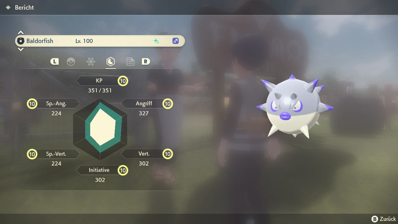 Das Pokemon ist mit beeindruckenden 6×31 IV-Werten ausgestattet. Das bedeutet, dass es auf allen sechs Werten (KP, Ang., Sp-Ang., Vert., Sp-Vert., Init.) die maximalen 31 IV/DV-Punkte besitzt. Dein Pokemon startet somit mit herausragender Stärke in digitale Kämpfe.