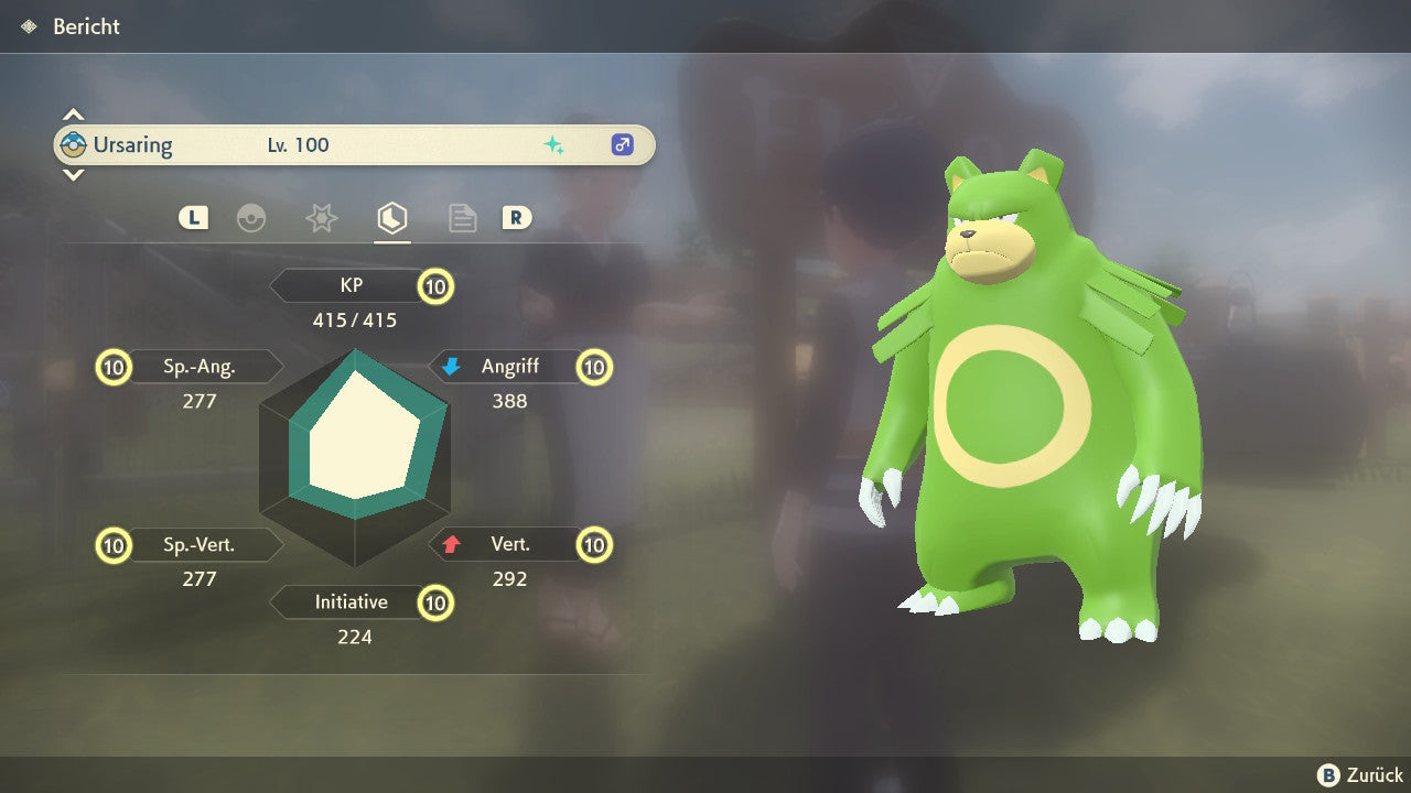 Das Pokemon ist mit beeindruckenden 6×31 IV-Werten ausgestattet. Das bedeutet, dass es auf allen sechs Werten (KP, Ang., Sp-Ang., Vert., Sp-Vert., Init.) die maximalen 31 IV/DV-Punkte besitzt. Dein Pokemon startet somit mit herausragender Stärke in digitale Kämpfe.