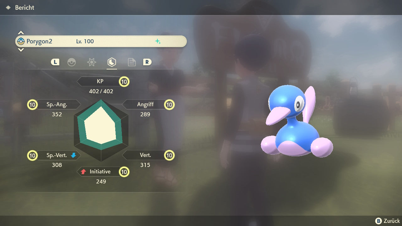 Das Pokemon ist mit beeindruckenden 6×31 IV-Werten ausgestattet. Das bedeutet, dass es auf allen sechs Werten (KP, Ang., Sp-Ang., Vert., Sp-Vert., Init.) die maximalen 31 IV/DV-Punkte besitzt. Dein Pokemon startet somit mit herausragender Stärke in digitale Kämpfe.