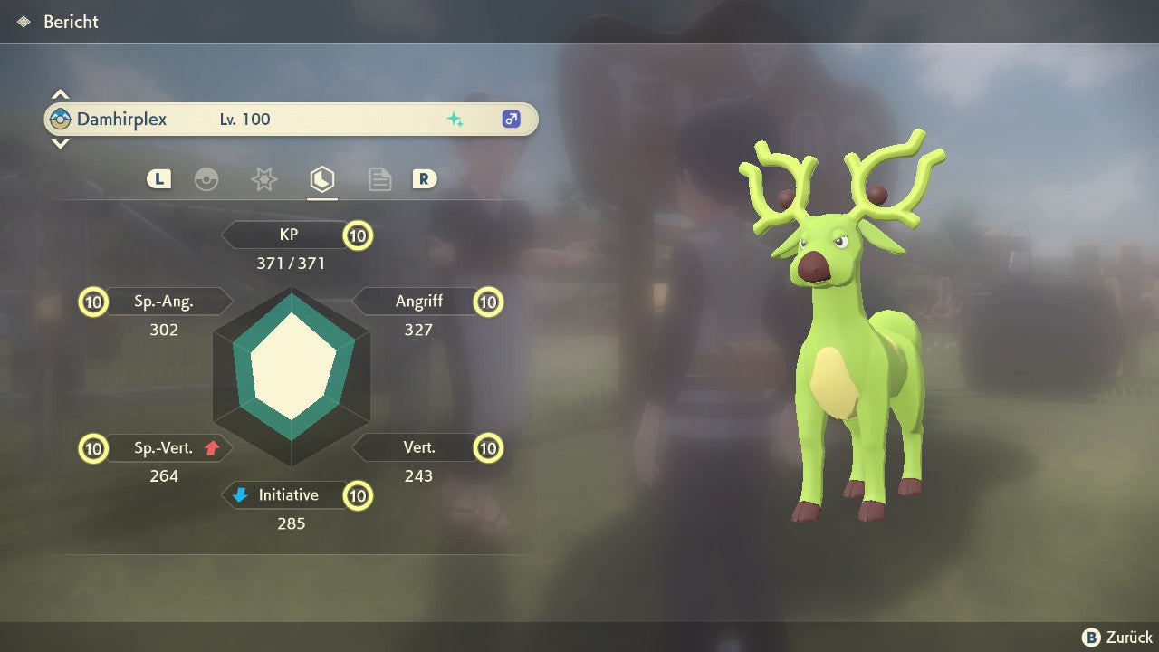 Das Pokemon ist mit beeindruckenden 6×31 IV-Werten ausgestattet. Das bedeutet, dass es auf allen sechs Werten (KP, Ang., Sp-Ang., Vert., Sp-Vert., Init.) die maximalen 31 IV/DV-Punkte besitzt. Dein Pokemon startet somit mit herausragender Stärke in digitale Kämpfe.