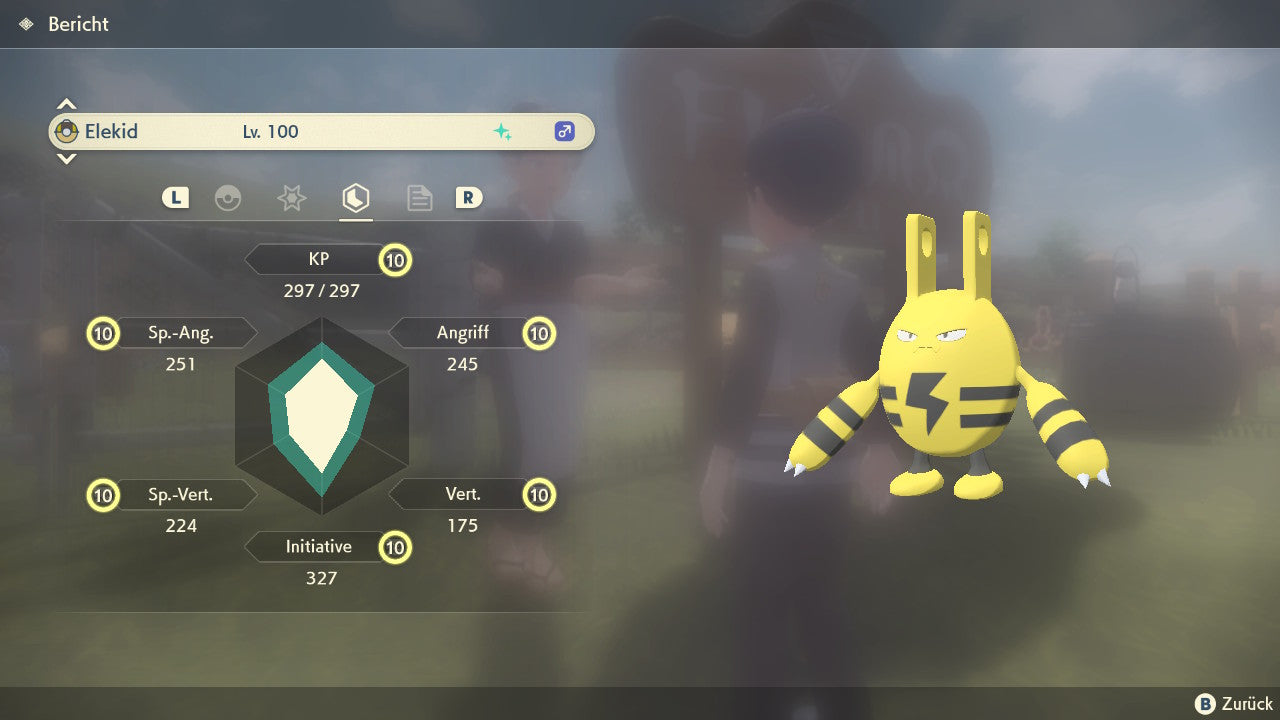 Das Pokemon ist mit beeindruckenden 6×31 IV-Werten ausgestattet. Das bedeutet, dass es auf allen sechs Werten (KP, Ang., Sp-Ang., Vert., Sp-Vert., Init.) die maximalen 31 IV/DV-Punkte besitzt. Dein Pokemon startet somit mit herausragender Stärke in digitale Kämpfe.