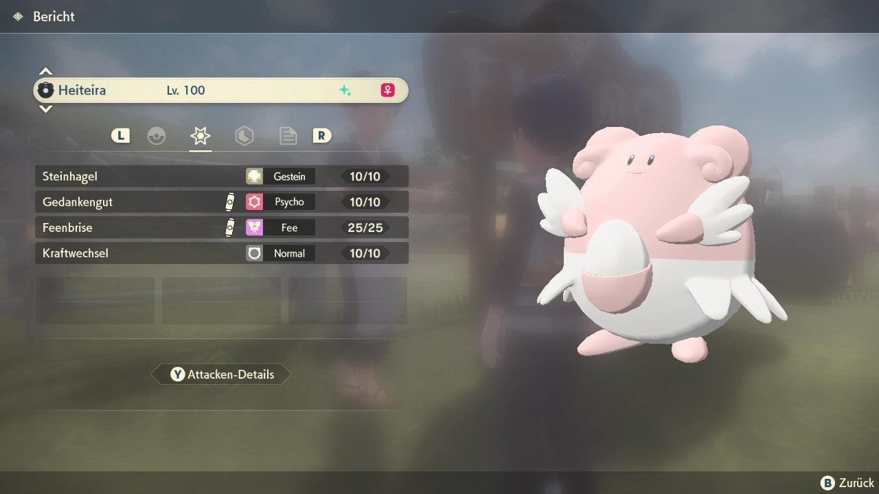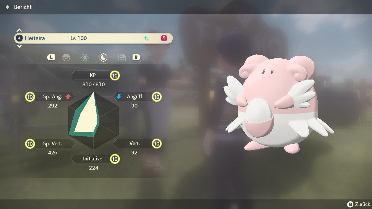 Das Pokemon ist mit beeindruckenden 6×31 IV-Werten ausgestattet. Das bedeutet, dass es auf allen sechs Werten (KP, Ang., Sp-Ang., Vert., Sp-Vert., Init.) die maximalen 31 IV/DV-Punkte besitzt. Dein Pokemon startet somit mit herausragender Stärke in digitale Kämpfe.