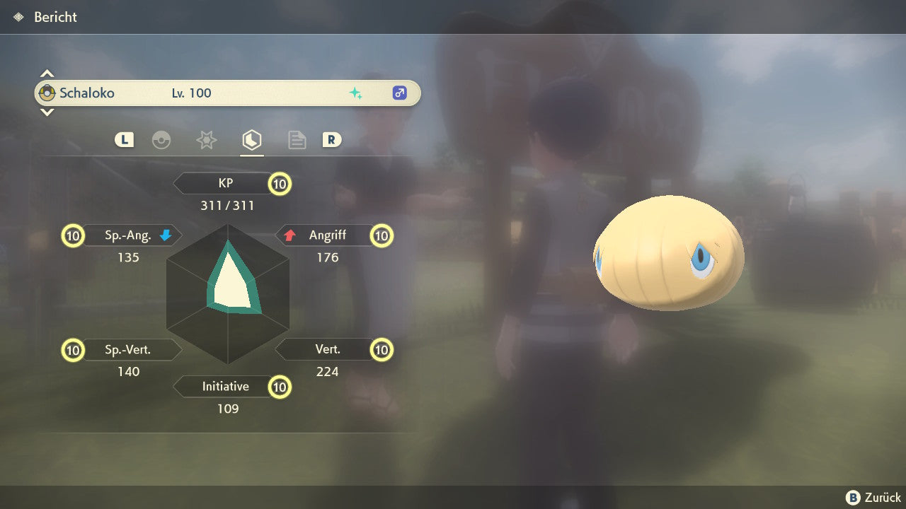 Das Pokemon ist mit beeindruckenden 6×31 IV-Werten ausgestattet. Das bedeutet, dass es auf allen sechs Werten (KP, Ang., Sp-Ang., Vert., Sp-Vert., Init.) die maximalen 31 IV/DV-Punkte besitzt. Dein Pokemon startet somit mit herausragender Stärke in digitale Kämpfe.