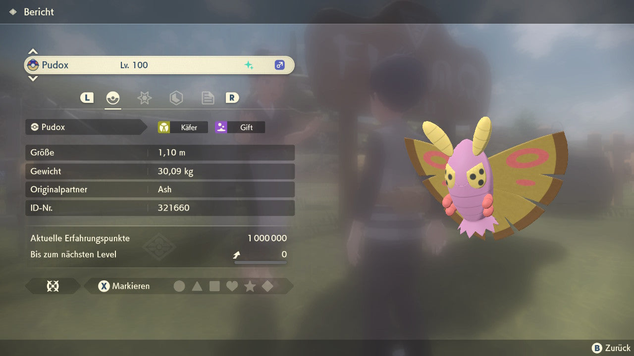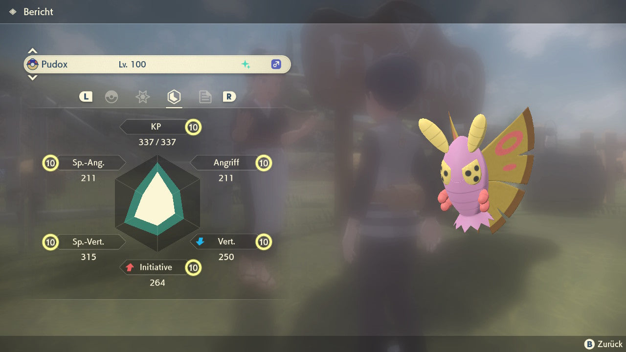 Das Pokemon ist mit beeindruckenden 6×31 IV-Werten ausgestattet. Das bedeutet, dass es auf allen sechs Werten (KP, Ang., Sp-Ang., Vert., Sp-Vert., Init.) die maximalen 31 IV/DV-Punkte besitzt. Dein Pokemon startet somit mit herausragender Stärke in digitale Kämpfe.