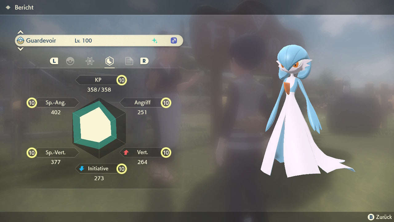 Das Pokemon ist mit beeindruckenden 6×31 IV-Werten ausgestattet. Das bedeutet, dass es auf allen sechs Werten (KP, Ang., Sp-Ang., Vert., Sp-Vert., Init.) die maximalen 31 IV/DV-Punkte besitzt. Dein Pokemon startet somit mit herausragender Stärke in digitale Kämpfe.