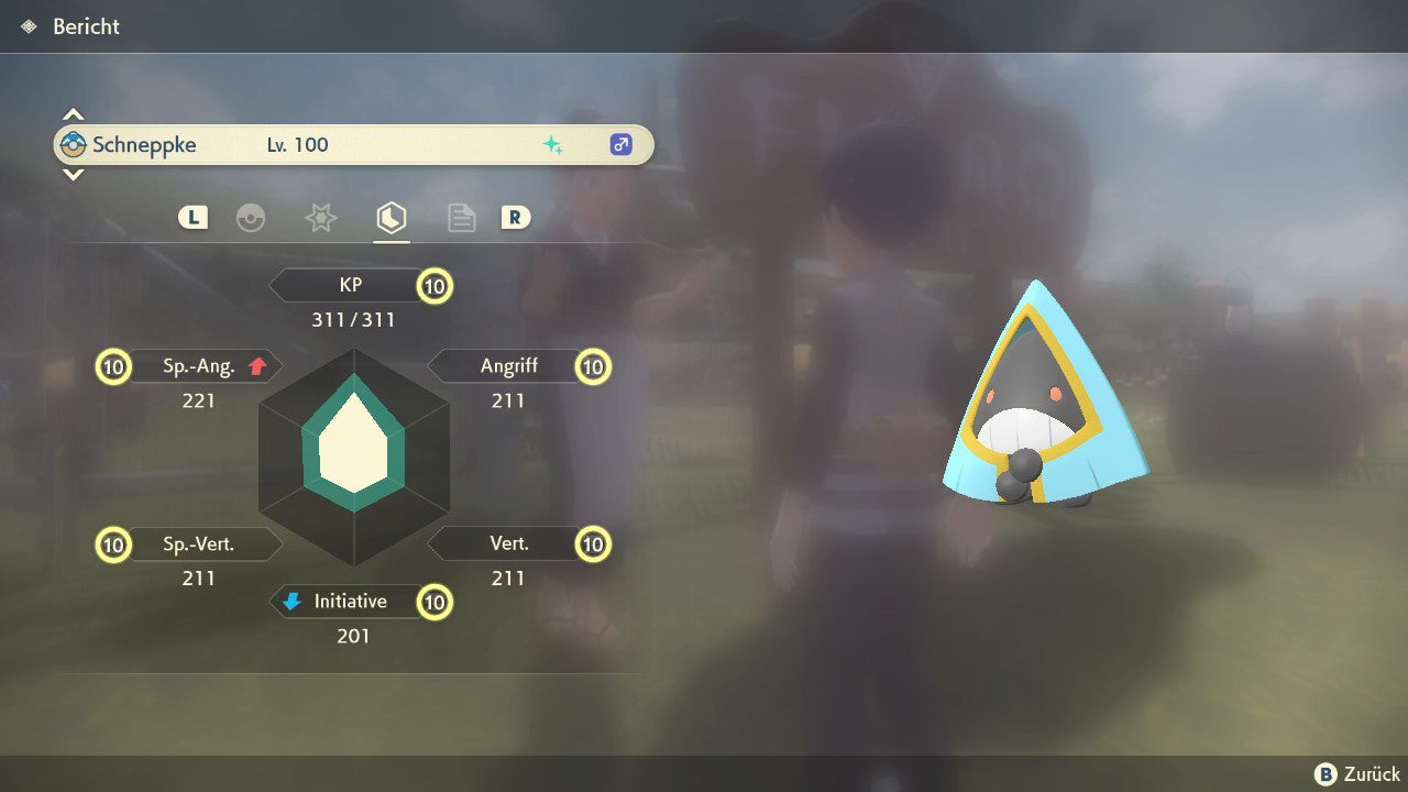 Das Pokemon ist mit beeindruckenden 6×31 IV-Werten ausgestattet. Das bedeutet, dass es auf allen sechs Werten (KP, Ang., Sp-Ang., Vert., Sp-Vert., Init.) die maximalen 31 IV/DV-Punkte besitzt. Dein Pokemon startet somit mit herausragender Stärke in digitale Kämpfe.