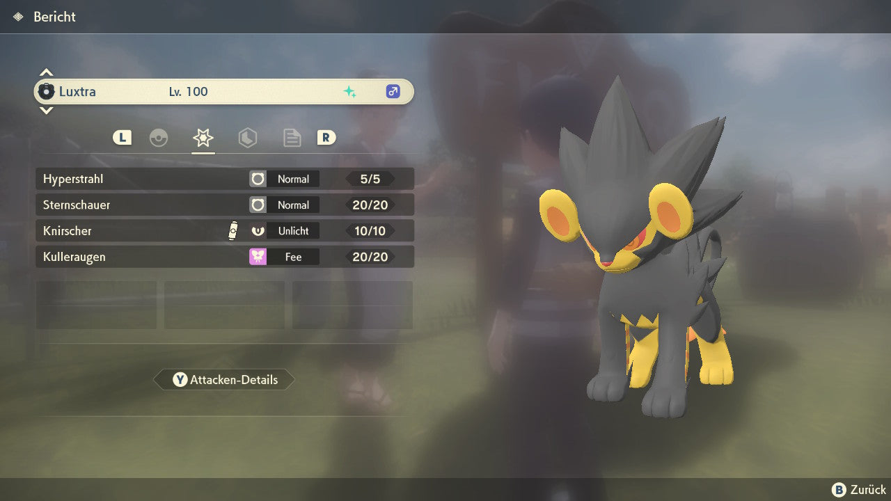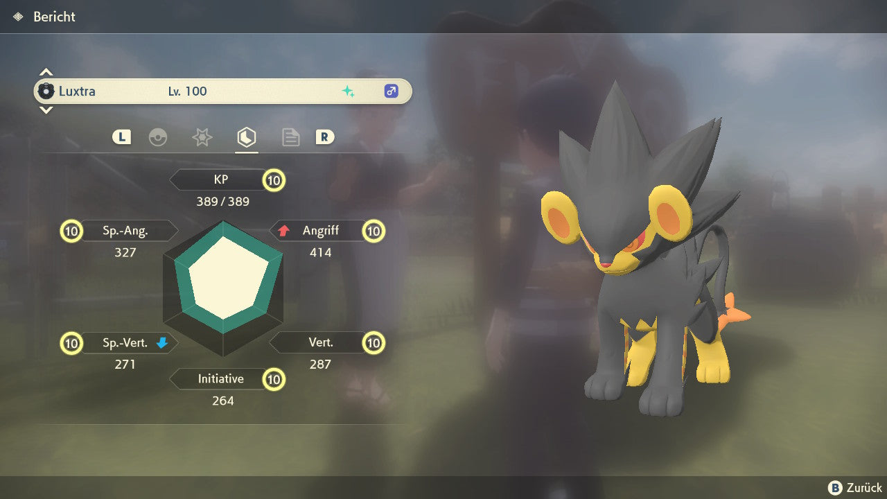 Das Pokemon ist mit beeindruckenden 6×31 IV-Werten ausgestattet. Das bedeutet, dass es auf allen sechs Werten (KP, Ang., Sp-Ang., Vert., Sp-Vert., Init.) die maximalen 31 IV/DV-Punkte besitzt. Dein Pokemon startet somit mit herausragender Stärke in digitale Kämpfe.