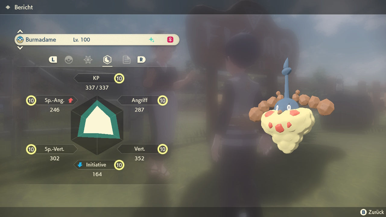 Das Pokemon ist mit beeindruckenden 6×31 IV-Werten ausgestattet. Das bedeutet, dass es auf allen sechs Werten (KP, Ang., Sp-Ang., Vert., Sp-Vert., Init.) die maximalen 31 IV/DV-Punkte besitzt. Dein Pokemon startet somit mit herausragender Stärke in digitale Kämpfe.
