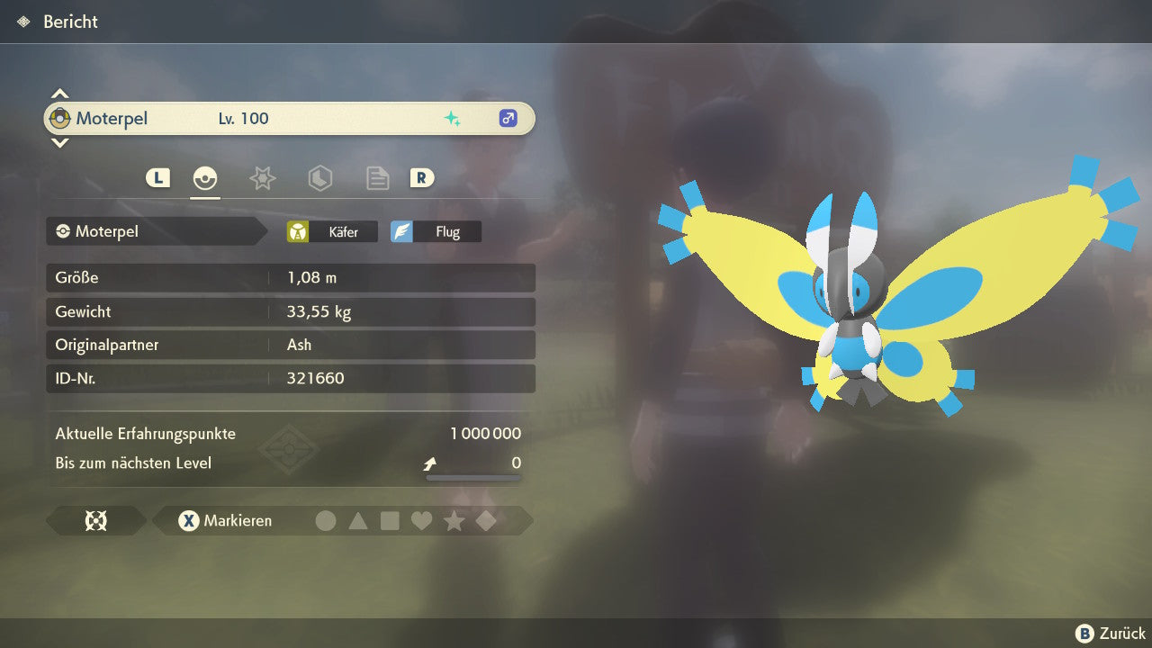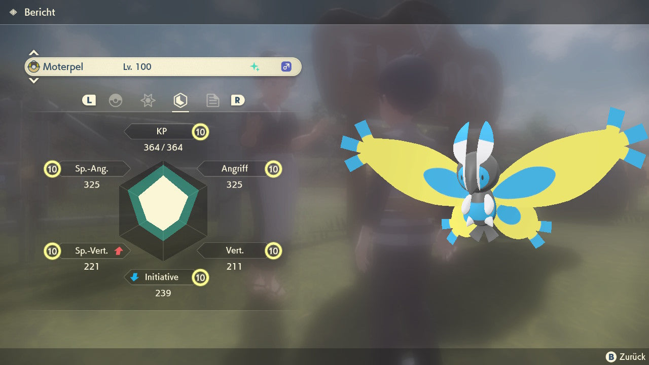 Das Pokemon ist mit beeindruckenden 6×31 IV-Werten ausgestattet. Das bedeutet, dass es auf allen sechs Werten (KP, Ang., Sp-Ang., Vert., Sp-Vert., Init.) die maximalen 31 IV/DV-Punkte besitzt. Dein Pokemon startet somit mit herausragender Stärke in digitale Kämpfe.