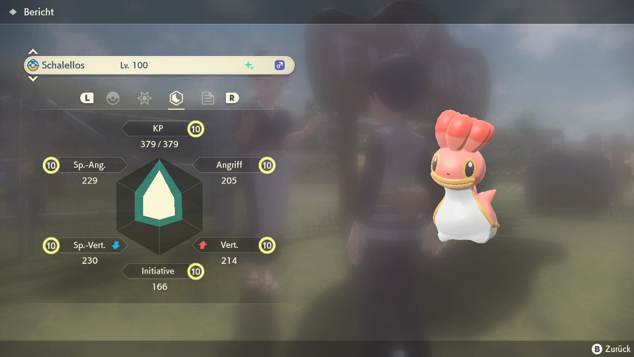 Das Pokemon ist mit beeindruckenden 6×31 IV-Werten ausgestattet. Das bedeutet, dass es auf allen sechs Werten (KP, Ang., Sp-Ang., Vert., Sp-Vert., Init.) die maximalen 31 IV/DV-Punkte besitzt. Dein Pokemon startet somit mit herausragender Stärke in digitale Kämpfe.