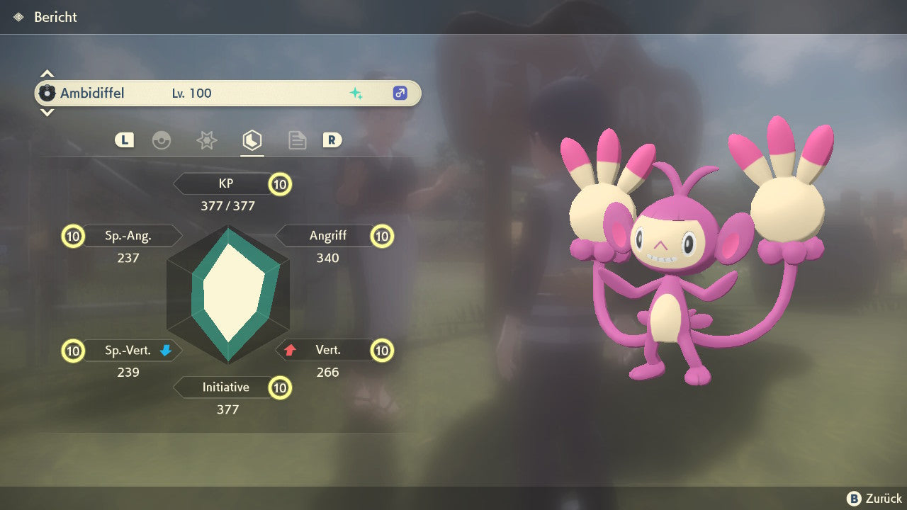 Das Pokemon ist mit beeindruckenden 6×31 IV-Werten ausgestattet. Das bedeutet, dass es auf allen sechs Werten (KP, Ang., Sp-Ang., Vert., Sp-Vert., Init.) die maximalen 31 IV/DV-Punkte besitzt. Dein Pokemon startet somit mit herausragender Stärke in digitale Kämpfe.