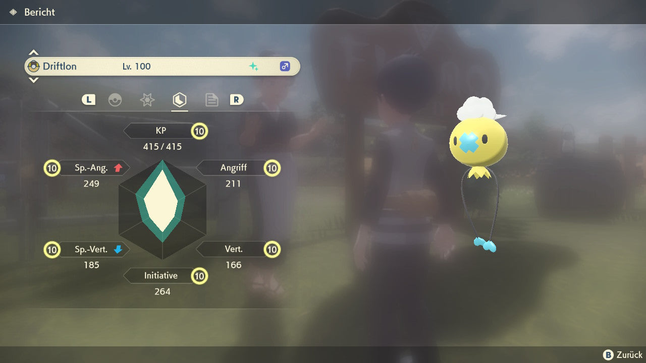 Das Pokemon ist mit beeindruckenden 6×31 IV-Werten ausgestattet. Das bedeutet, dass es auf allen sechs Werten (KP, Ang., Sp-Ang., Vert., Sp-Vert., Init.) die maximalen 31 IV/DV-Punkte besitzt. Dein Pokemon startet somit mit herausragender Stärke in digitale Kämpfe.