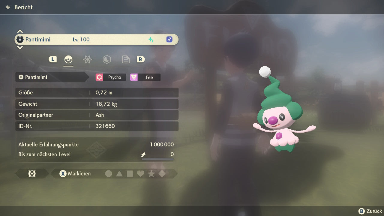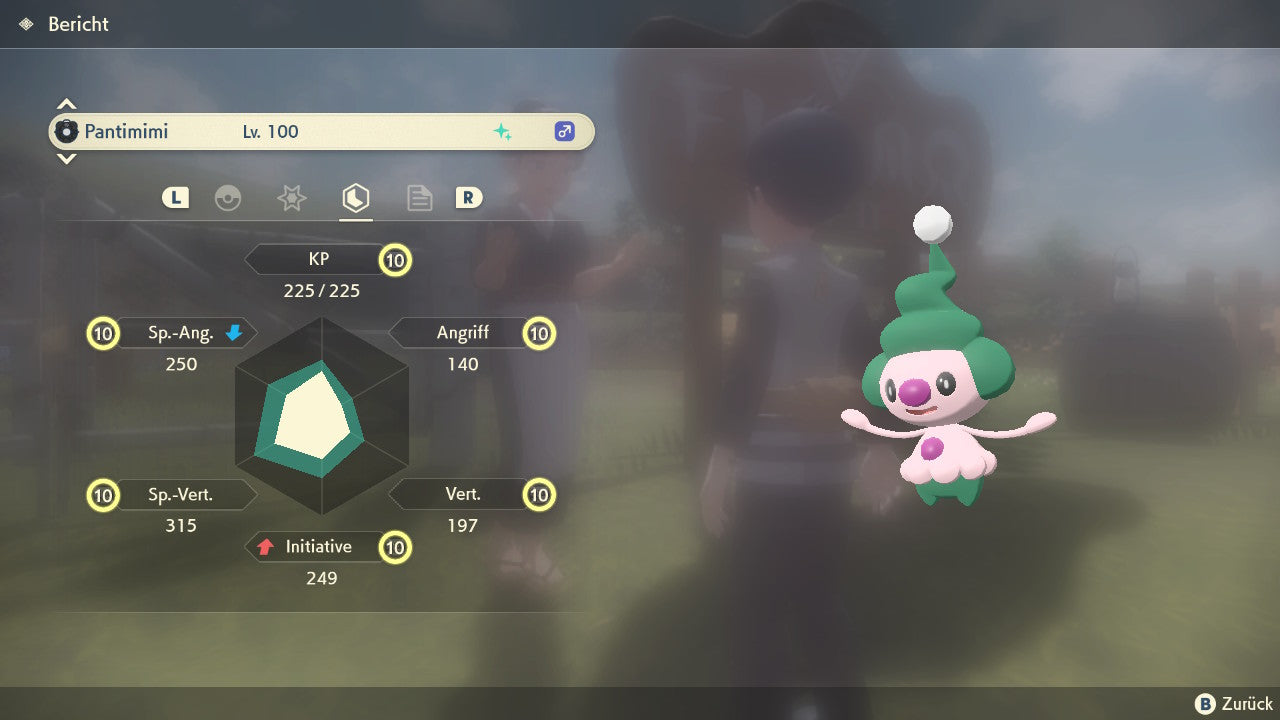 Das Pokemon ist mit beeindruckenden 6×31 IV-Werten ausgestattet. Das bedeutet, dass es auf allen sechs Werten (KP, Ang., Sp-Ang., Vert., Sp-Vert., Init.) die maximalen 31 IV/DV-Punkte besitzt. Dein Pokemon startet somit mit herausragender Stärke in digitale Kämpfe.
