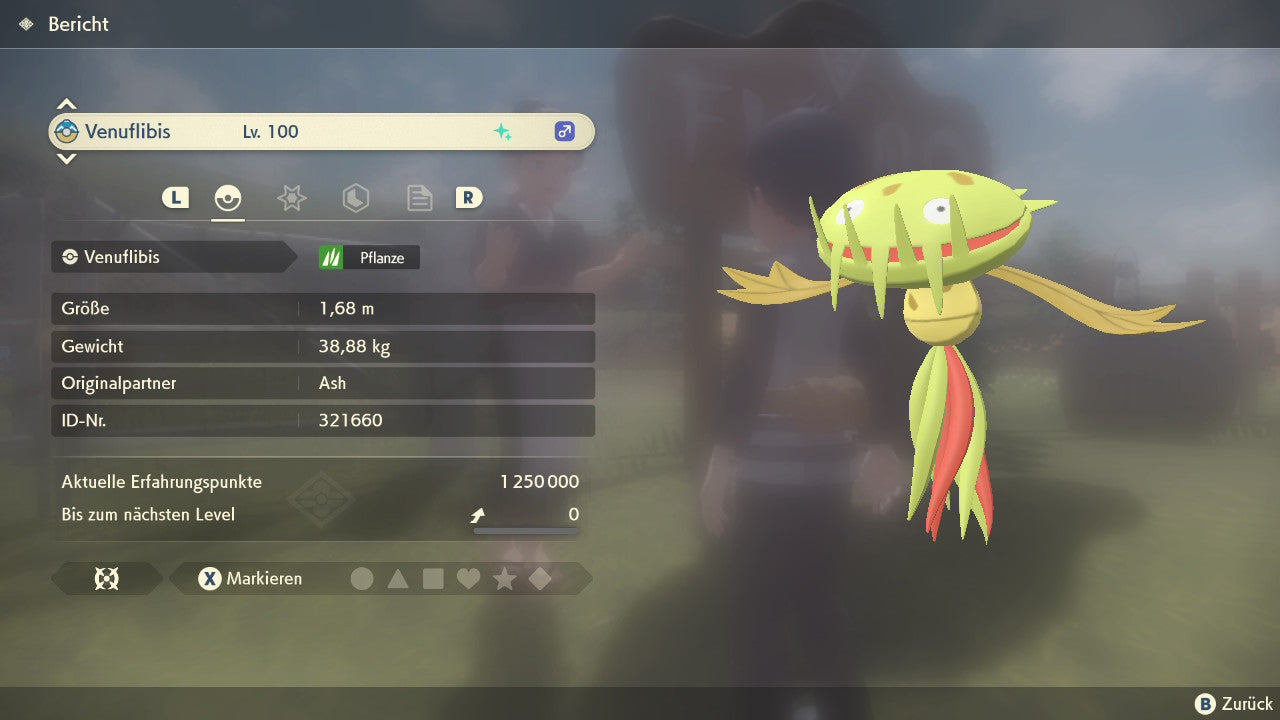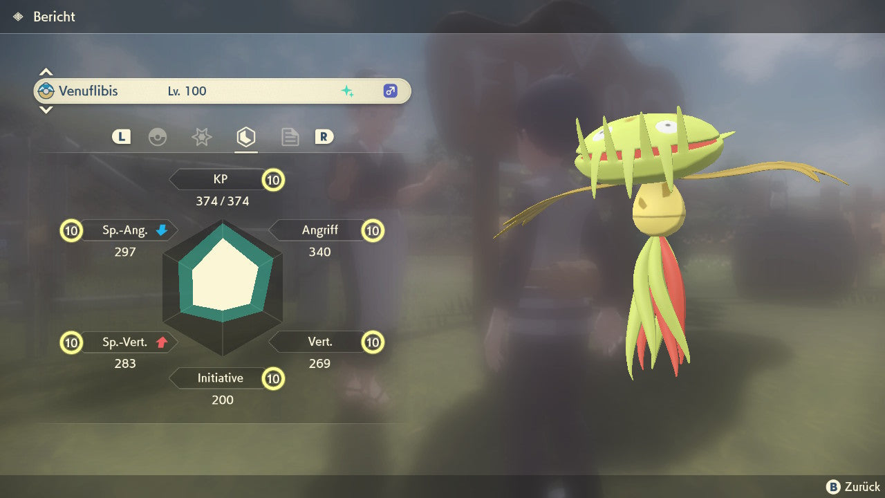 Das Pokemon ist mit beeindruckenden 6×31 IV-Werten ausgestattet. Das bedeutet, dass es auf allen sechs Werten (KP, Ang., Sp-Ang., Vert., Sp-Vert., Init.) die maximalen 31 IV/DV-Punkte besitzt. Dein Pokemon startet somit mit herausragender Stärke in digitale Kämpfe.