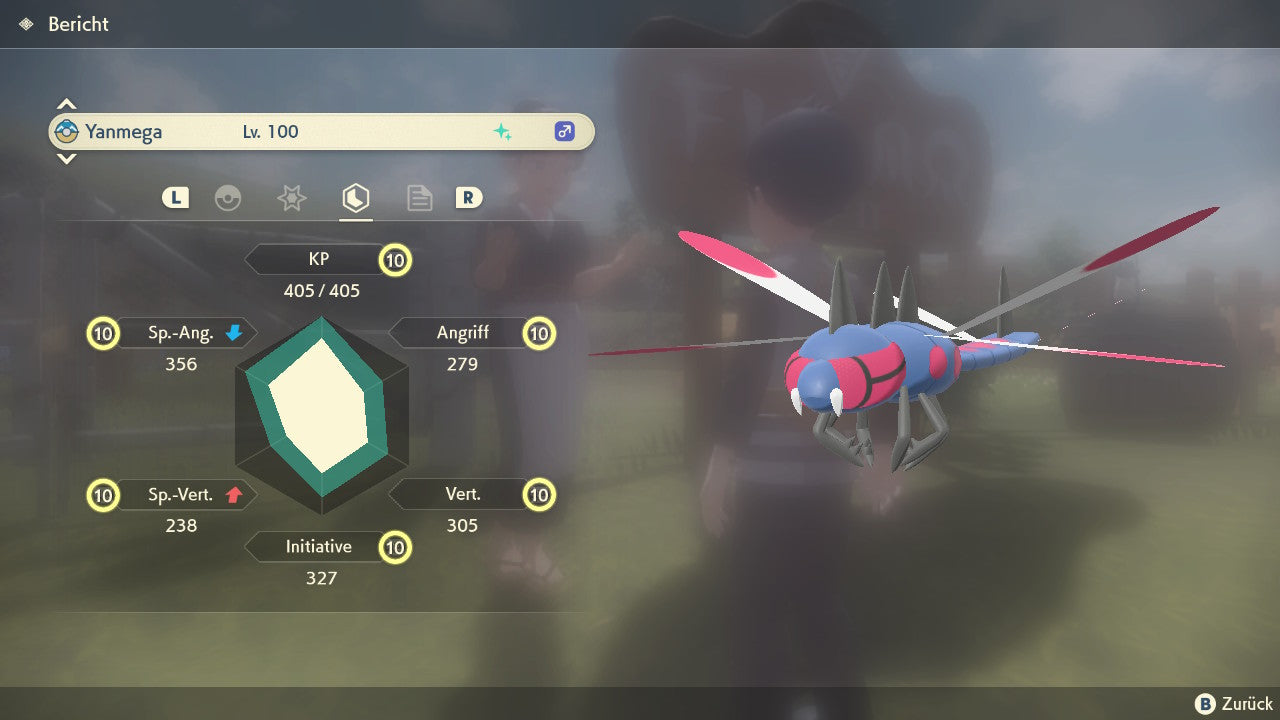 Das Pokemon ist mit beeindruckenden 6×31 IV-Werten ausgestattet. Das bedeutet, dass es auf allen sechs Werten (KP, Ang., Sp-Ang., Vert., Sp-Vert., Init.) die maximalen 31 IV/DV-Punkte besitzt. Dein Pokemon startet somit mit herausragender Stärke in digitale Kämpfe.