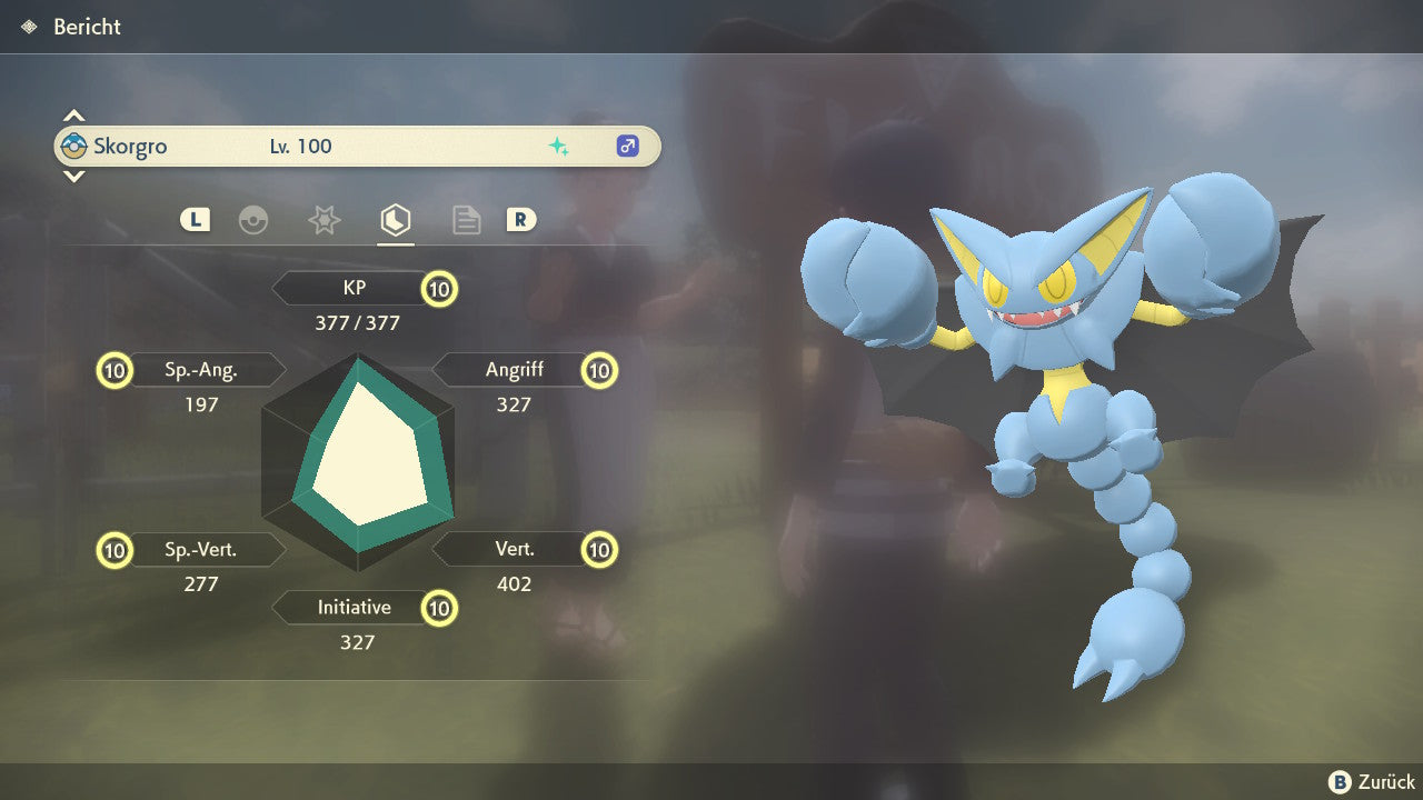 Das Pokemon ist mit beeindruckenden 6×31 IV-Werten ausgestattet. Das bedeutet, dass es auf allen sechs Werten (KP, Ang., Sp-Ang., Vert., Sp-Vert., Init.) die maximalen 31 IV/DV-Punkte besitzt. Dein Pokemon startet somit mit herausragender Stärke in digitale Kämpfe.