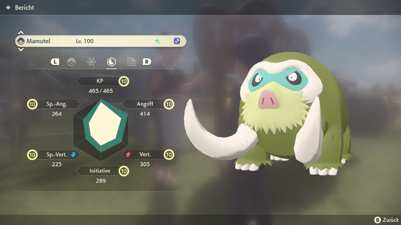 Das Pokemon ist mit beeindruckenden 6×31 IV-Werten ausgestattet. Das bedeutet, dass es auf allen sechs Werten (KP, Ang., Sp-Ang., Vert., Sp-Vert., Init.) die maximalen 31 IV/DV-Punkte besitzt. Dein Pokemon startet somit mit herausragender Stärke in digitale Kämpfe.