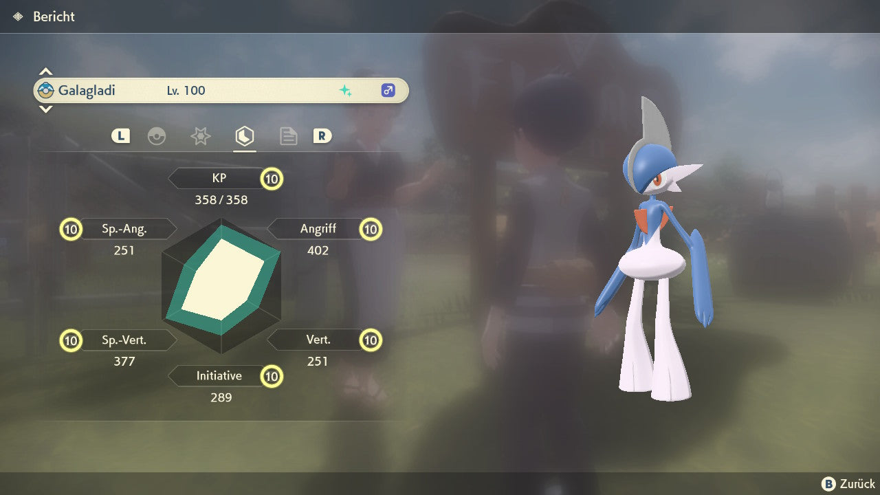 Das Pokemon ist mit beeindruckenden 6×31 IV-Werten ausgestattet. Das bedeutet, dass es auf allen sechs Werten (KP, Ang., Sp-Ang., Vert., Sp-Vert., Init.) die maximalen 31 IV/DV-Punkte besitzt. Dein Pokemon startet somit mit herausragender Stärke in digitale Kämpfe.