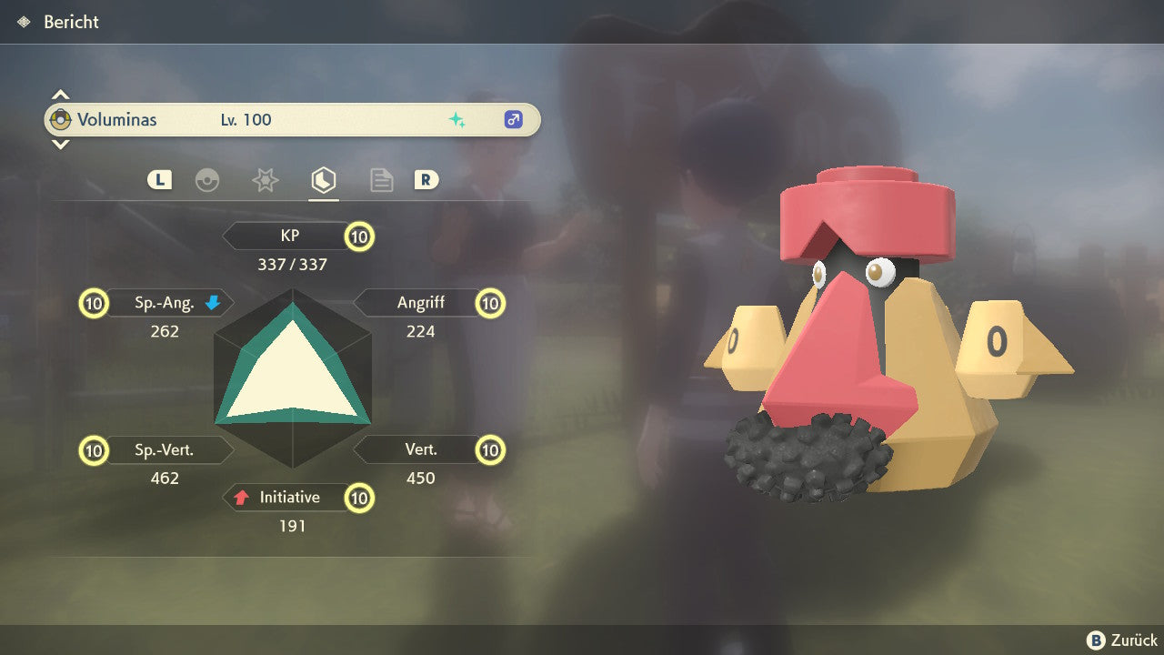 Das Pokemon ist mit beeindruckenden 6×31 IV-Werten ausgestattet. Das bedeutet, dass es auf allen sechs Werten (KP, Ang., Sp-Ang., Vert., Sp-Vert., Init.) die maximalen 31 IV/DV-Punkte besitzt. Dein Pokemon startet somit mit herausragender Stärke in digitale Kämpfe.