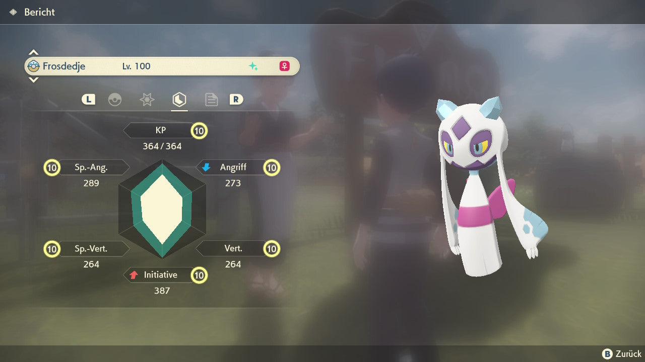 Das Pokemon ist mit beeindruckenden 6×31 IV-Werten ausgestattet. Das bedeutet, dass es auf allen sechs Werten (KP, Ang., Sp-Ang., Vert., Sp-Vert., Init.) die maximalen 31 IV/DV-Punkte besitzt. Dein Pokemon startet somit mit herausragender Stärke in digitale Kämpfe.