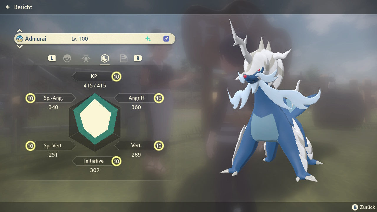 Das Pokemon ist mit beeindruckenden 6×31 IV-Werten ausgestattet. Das bedeutet, dass es auf allen sechs Werten (KP, Ang., Sp-Ang., Vert., Sp-Vert., Init.) die maximalen 31 IV/DV-Punkte besitzt. Dein Pokemon startet somit mit herausragender Stärke in digitale Kämpfe.