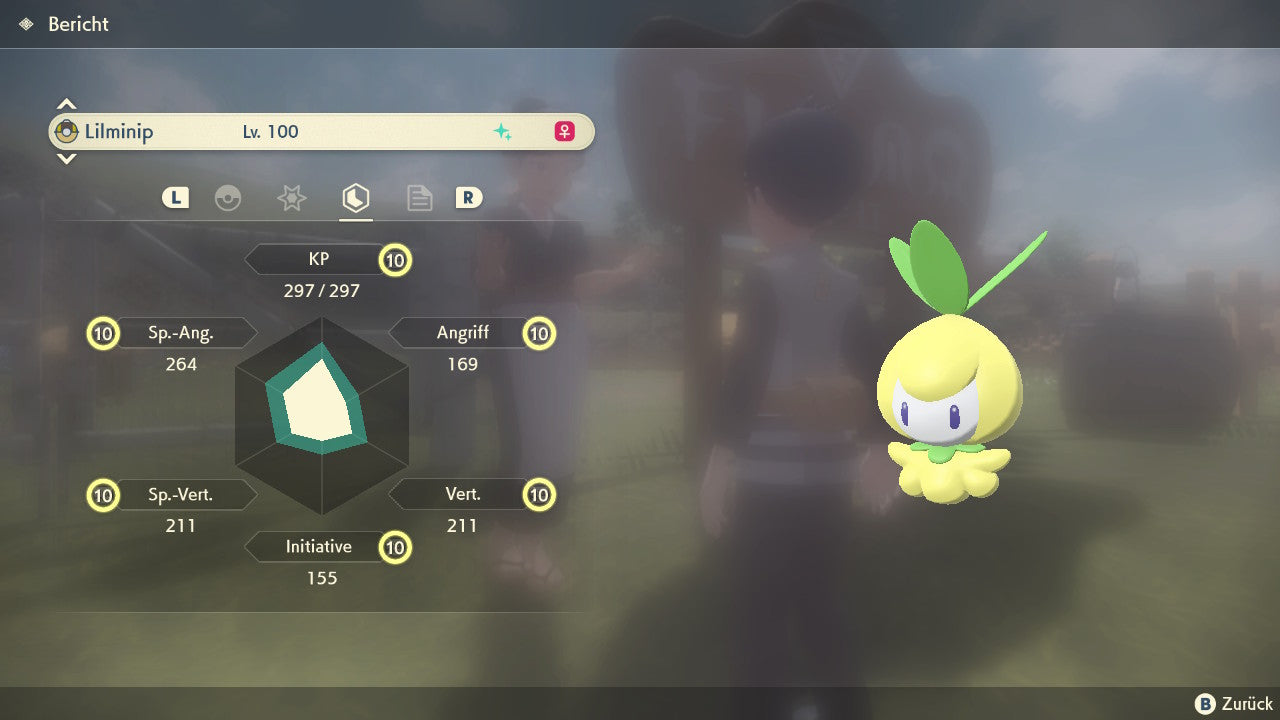 Das Pokemon ist mit beeindruckenden 6×31 IV-Werten ausgestattet. Das bedeutet, dass es auf allen sechs Werten (KP, Ang., Sp-Ang., Vert., Sp-Vert., Init.) die maximalen 31 IV/DV-Punkte besitzt. Dein Pokemon startet somit mit herausragender Stärke in digitale Kämpfe.