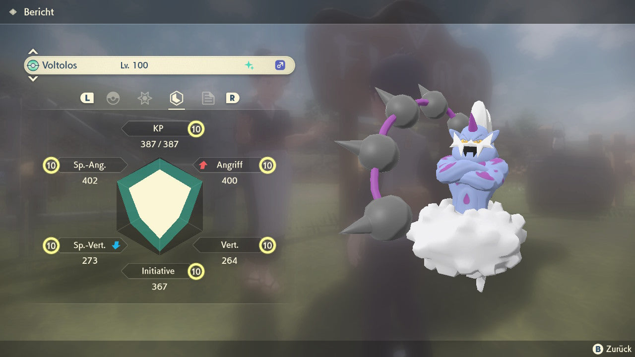 Das Pokemon ist mit beeindruckenden 6×31 IV-Werten ausgestattet. Das bedeutet, dass es auf allen sechs Werten (KP, Ang., Sp-Ang., Vert., Sp-Vert., Init.) die maximalen 31 IV/DV-Punkte besitzt. Dein Pokemon startet somit mit herausragender Stärke in digitale Kämpfe.