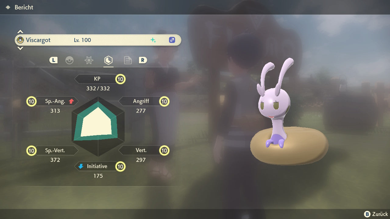 Das Pokemon ist mit beeindruckenden 6×31 IV-Werten ausgestattet. Das bedeutet, dass es auf allen sechs Werten (KP, Ang., Sp-Ang., Vert., Sp-Vert., Init.) die maximalen 31 IV/DV-Punkte besitzt. Dein Pokemon startet somit mit herausragender Stärke in digitale Kämpfe.