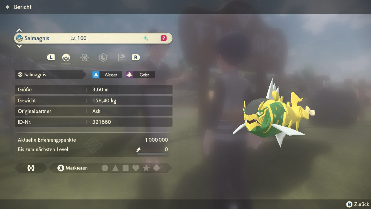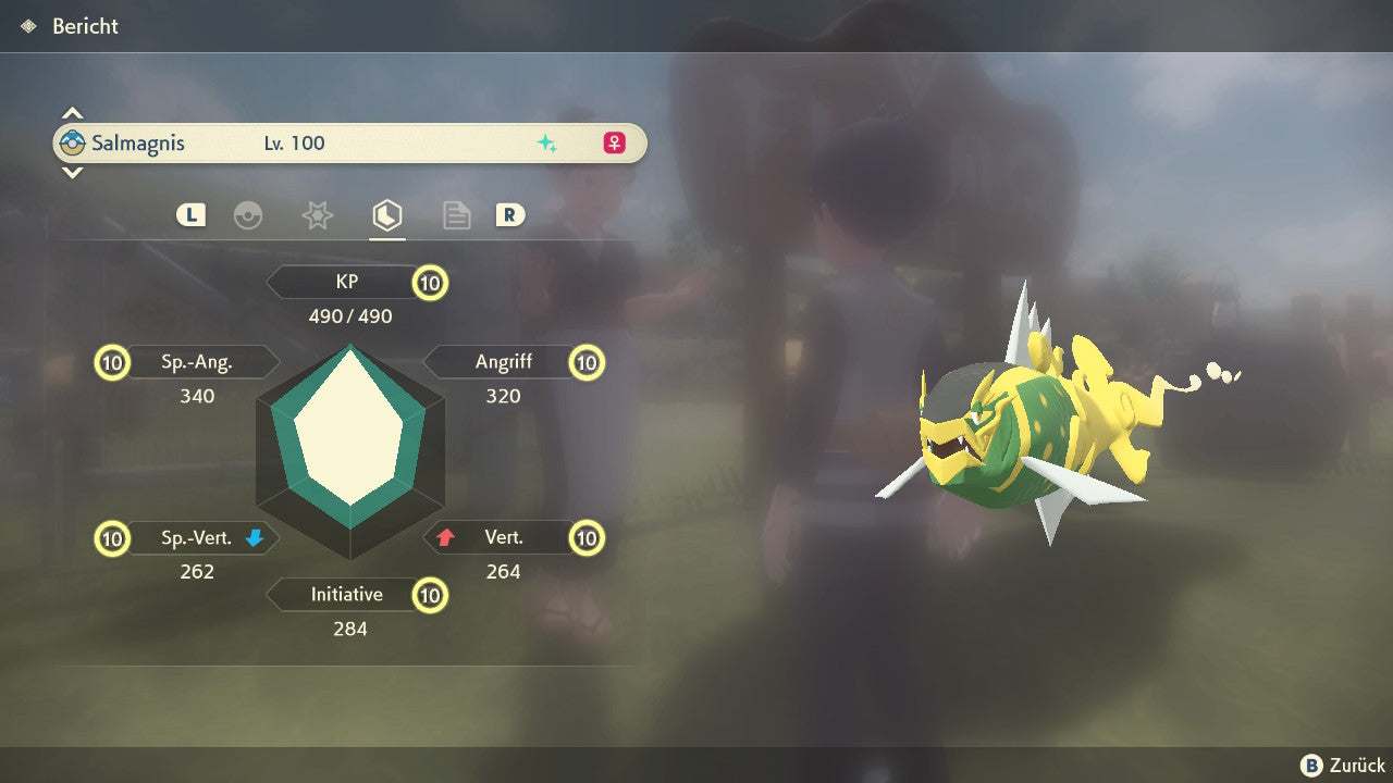 Das Pokemon ist mit beeindruckenden 6×31 IV-Werten ausgestattet. Das bedeutet, dass es auf allen sechs Werten (KP, Ang., Sp-Ang., Vert., Sp-Vert., Init.) die maximalen 31 IV/DV-Punkte besitzt. Dein Pokemon startet somit mit herausragender Stärke in digitale Kämpfe.