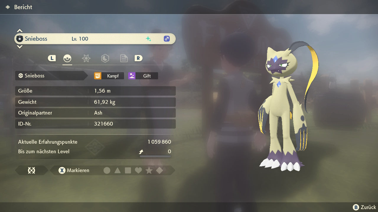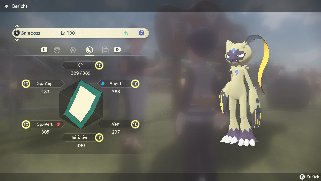 Das Pokemon ist mit beeindruckenden 6×31 IV-Werten ausgestattet. Das bedeutet, dass es auf allen sechs Werten (KP, Ang., Sp-Ang., Vert., Sp-Vert., Init.) die maximalen 31 IV/DV-Punkte besitzt. Dein Pokemon startet somit mit herausragender Stärke in digitale Kämpfe.