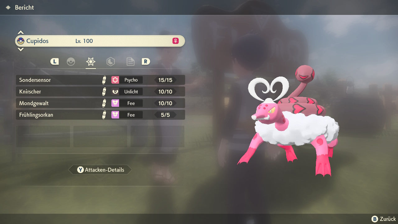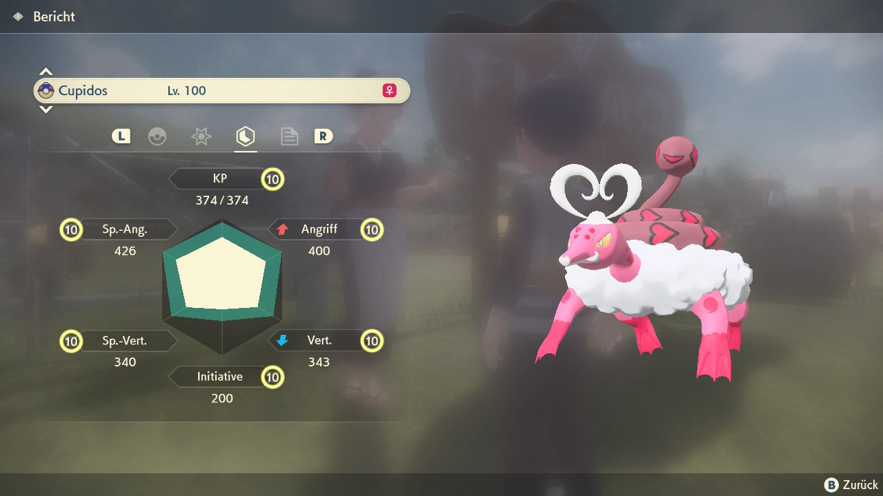 Das Pokemon ist mit beeindruckenden 6×31 IV-Werten ausgestattet. Das bedeutet, dass es auf allen sechs Werten (KP, Ang., Sp-Ang., Vert., Sp-Vert., Init.) die maximalen 31 IV/DV-Punkte besitzt. Dein Pokemon startet somit mit herausragender Stärke in digitale Kämpfe.