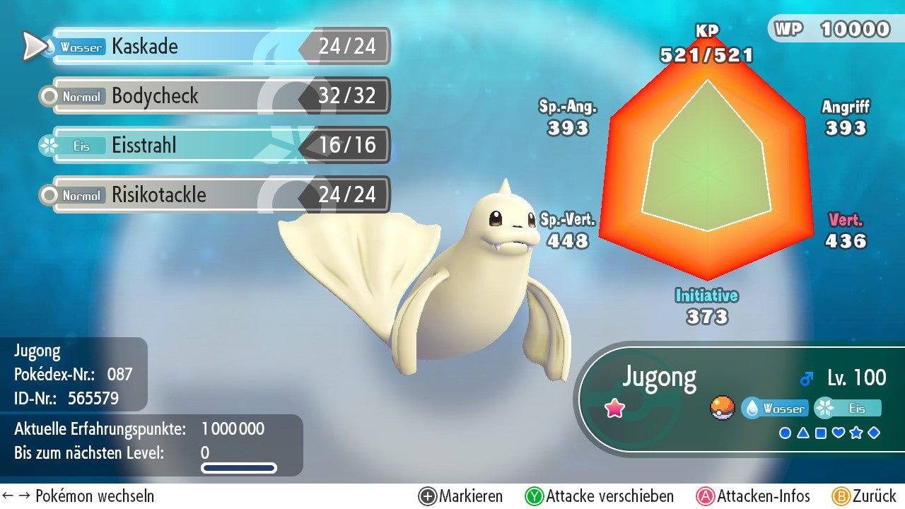 Das Pokemon ist mit beeindruckenden 6×31 IV-Werten ausgestattet. Das bedeutet, dass es auf allen sechs Werten (KP, Ang., Sp-Ang., Vert., Sp-Vert., Init.) die maximalen 31 IV/DV-Punkte besitzt. Dein Pokemon startet somit mit herausragender Stärke in digitale Kämpfe.