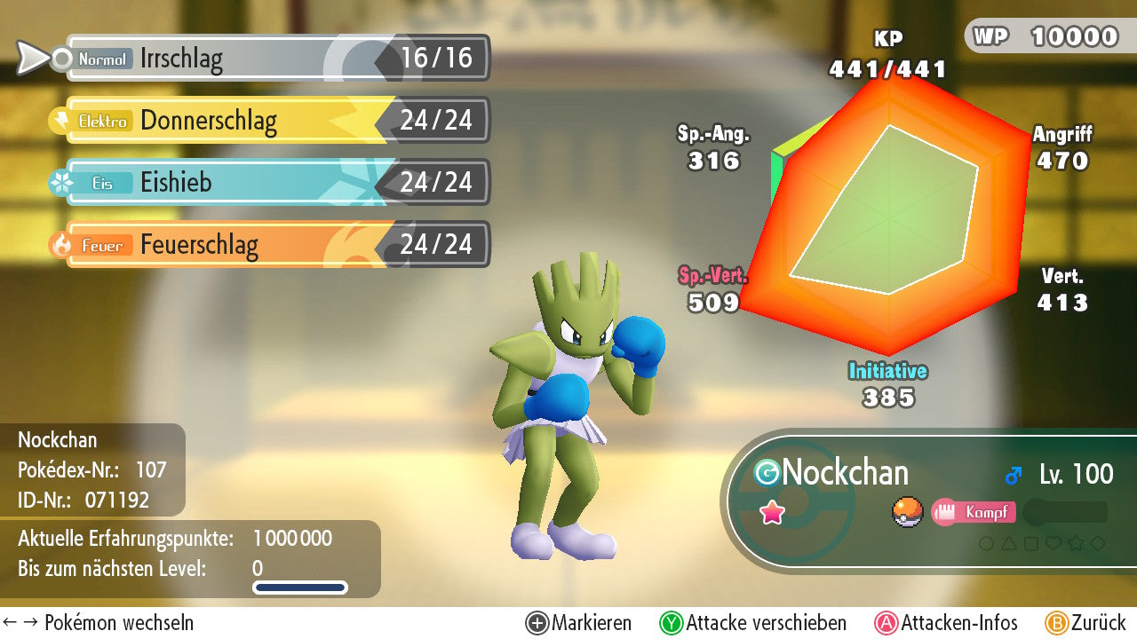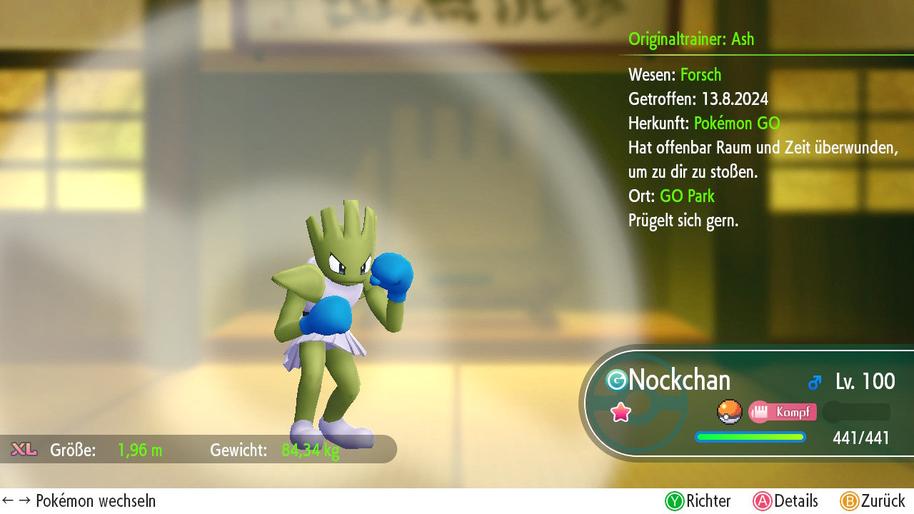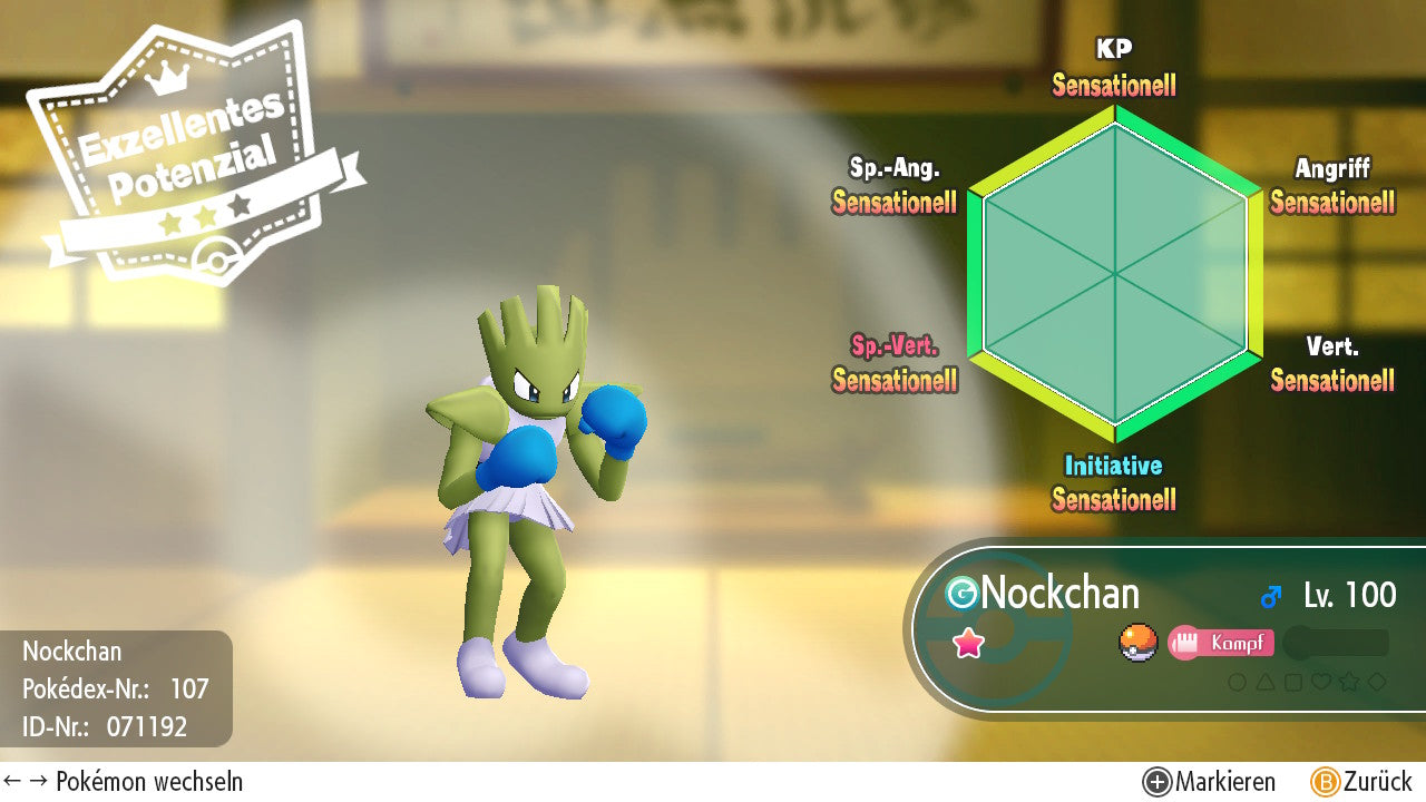 Das Pokemon ist mit beeindruckenden 6×31 IV-Werten ausgestattet. Das bedeutet, dass es auf allen sechs Werten (KP, Ang., Sp-Ang., Vert., Sp-Vert., Init.) die maximalen 31 IV/DV-Punkte besitzt. Dein Pokemon startet somit mit herausragender Stärke in digitale Kämpfe.