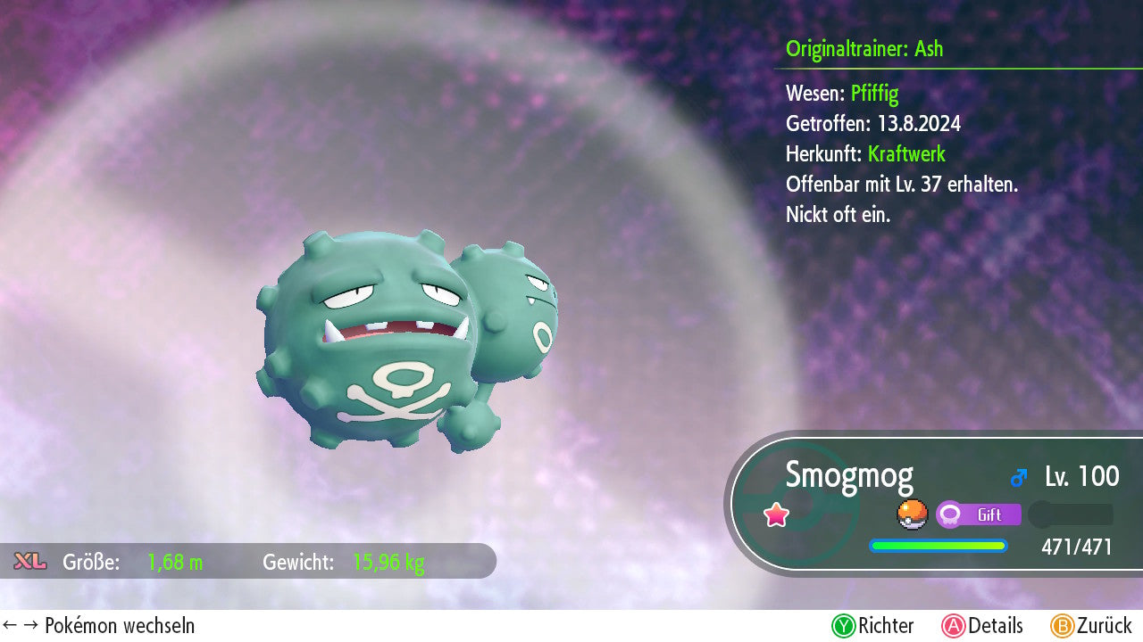 Das Pokemon ist mit beeindruckenden 6×31 IV-Werten ausgestattet. Das bedeutet, dass es auf allen sechs Werten (KP, Ang., Sp-Ang., Vert., Sp-Vert., Init.) die maximalen 31 IV/DV-Punkte besitzt. Dein Pokemon startet somit mit herausragender Stärke in digitale Kämpfe.