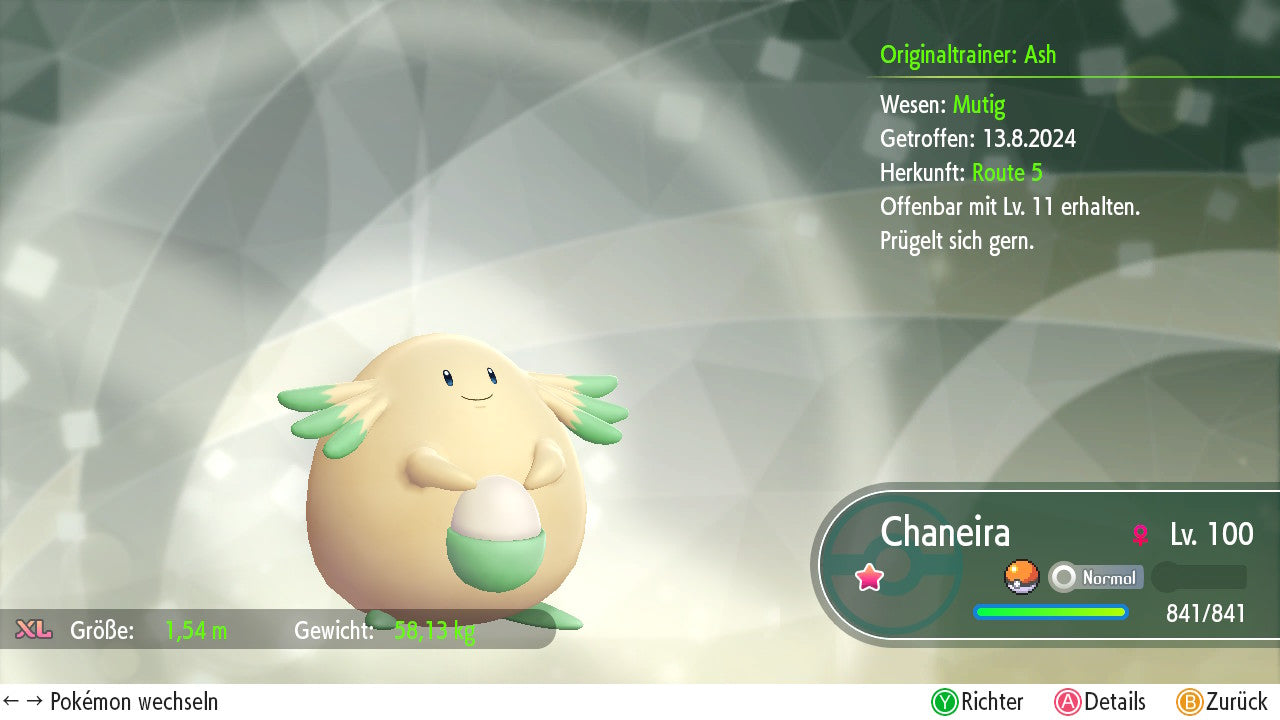 Das Pokemon ist mit beeindruckenden 6×31 IV-Werten ausgestattet. Das bedeutet, dass es auf allen sechs Werten (KP, Ang., Sp-Ang., Vert., Sp-Vert., Init.) die maximalen 31 IV/DV-Punkte besitzt. Dein Pokemon startet somit mit herausragender Stärke in digitale Kämpfe.